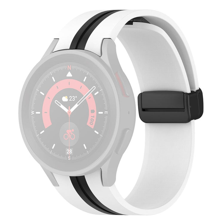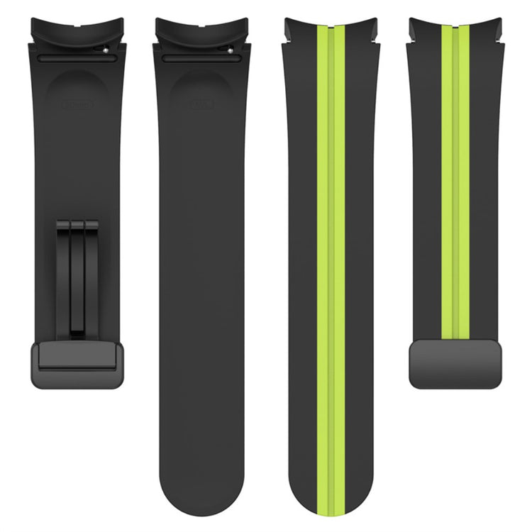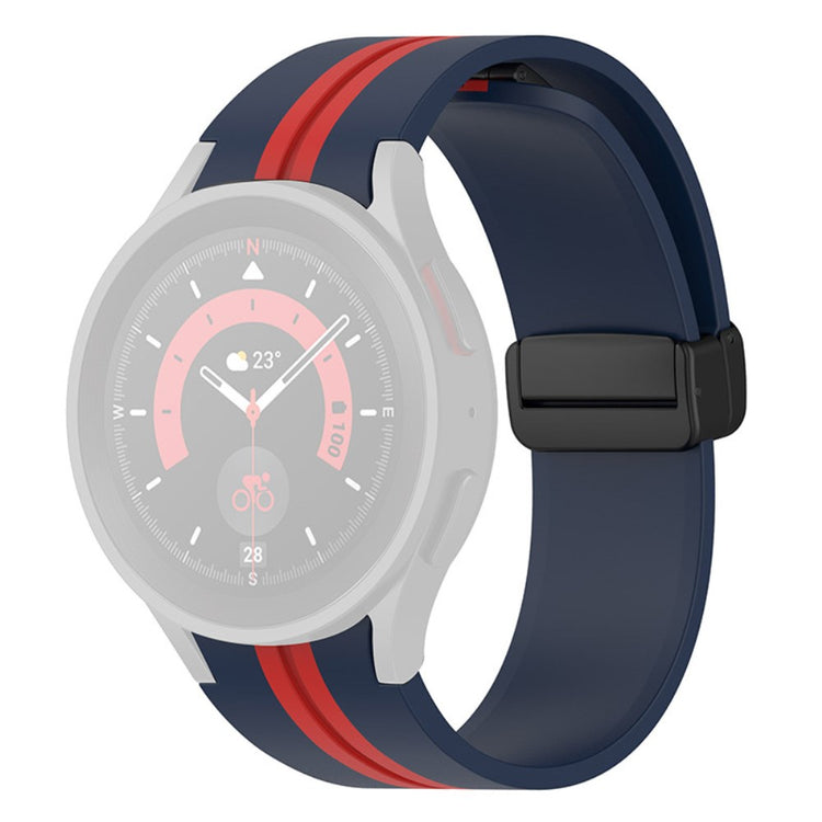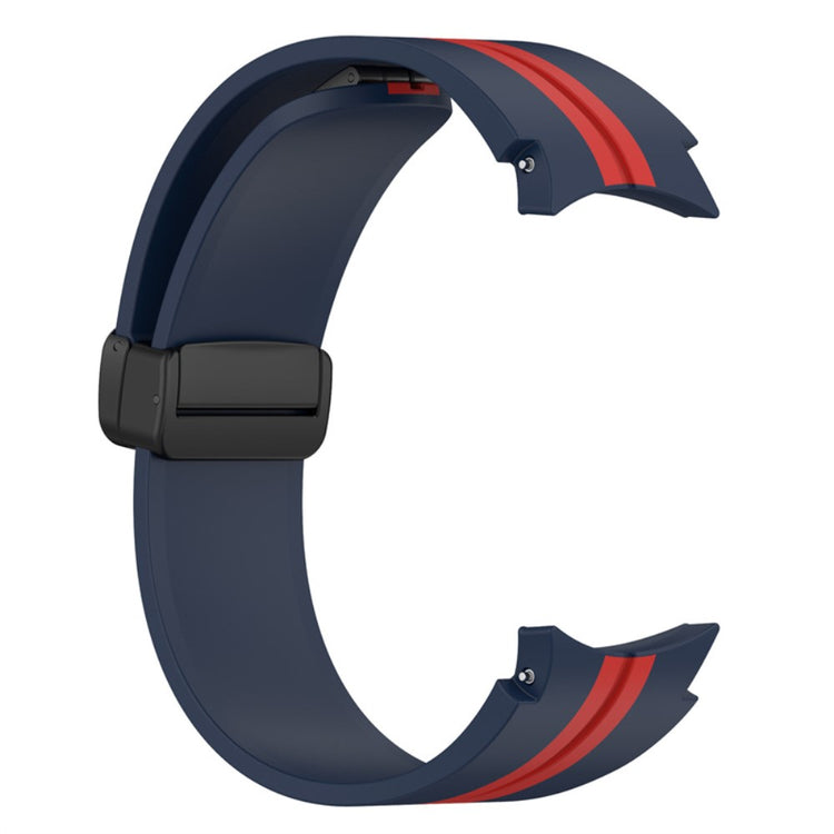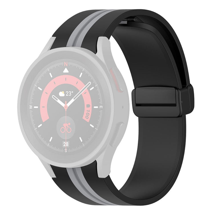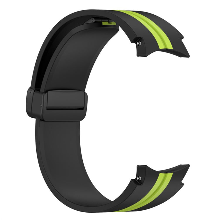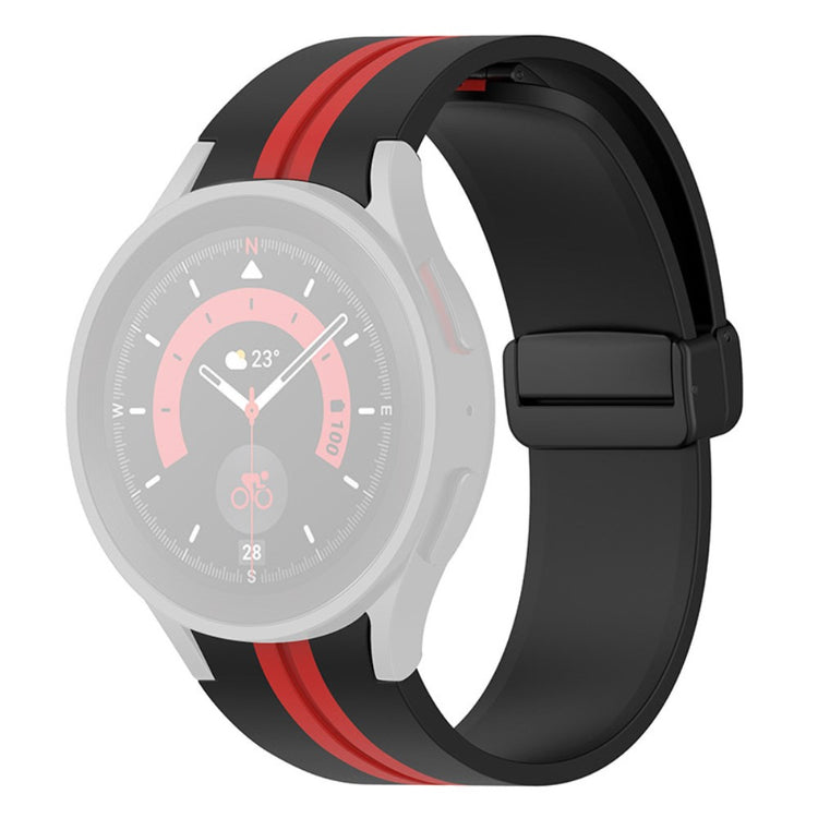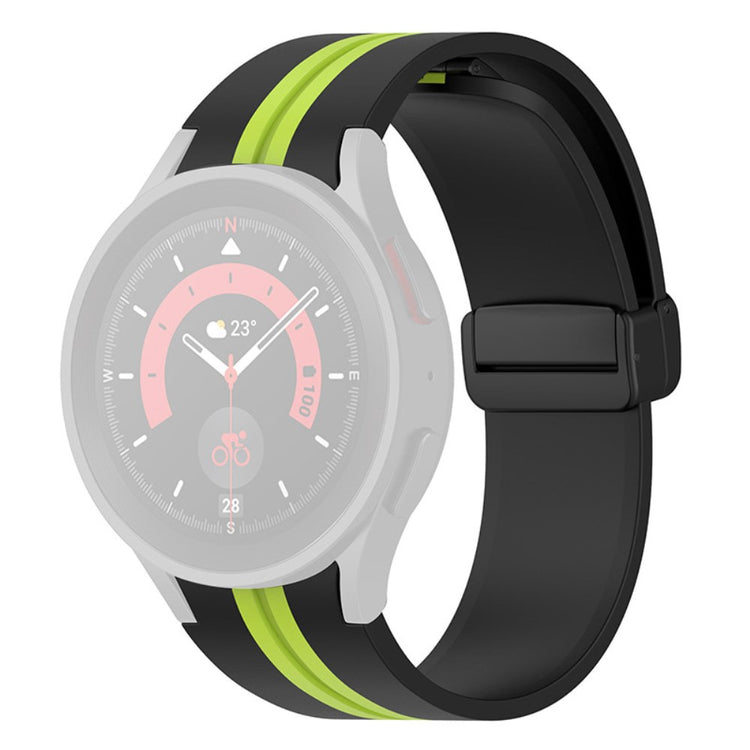Das Dual Color Silikon-Uhrenarmband ist die perfekte Ergänzung für Ihre Samsung Galaxy Watch 5 Pro, Watch 5 und Watch 4. Hergestellt aus ökologisch nachhaltigem Silikonmaterial, überzeugt es durch seine Verschleißfestigkeit und sorgt dafür, dass es auch bei täglichem Gebrauch in einwandfreiem Zustand bleibt. Die feine Verarbeitung garantiert vielfältigen Tragekomfort und die sanfte Oberfläche fühlt sich angenehm auf der Haut an. Dank der schwarzen Klappschließe können Sie das Armband mühelos an Ihr Handgelenk anpassen, was zusätzlichen Komfort und Sicherheit bietet. Das stilvolle Design macht es nicht nur zu einem praktischen Ersatz für Ihr alte oder beschädigte Armband, sondern verleiht Ihrer Uhr auch einen sportlichen Look. Zudem ist das Armband mit verschiedenen Samsung Galaxy Watch Modellen kompatibel, was es zu einer vielseitigen Wahl für jede Uhrensammler und Technikliebhaber macht.
