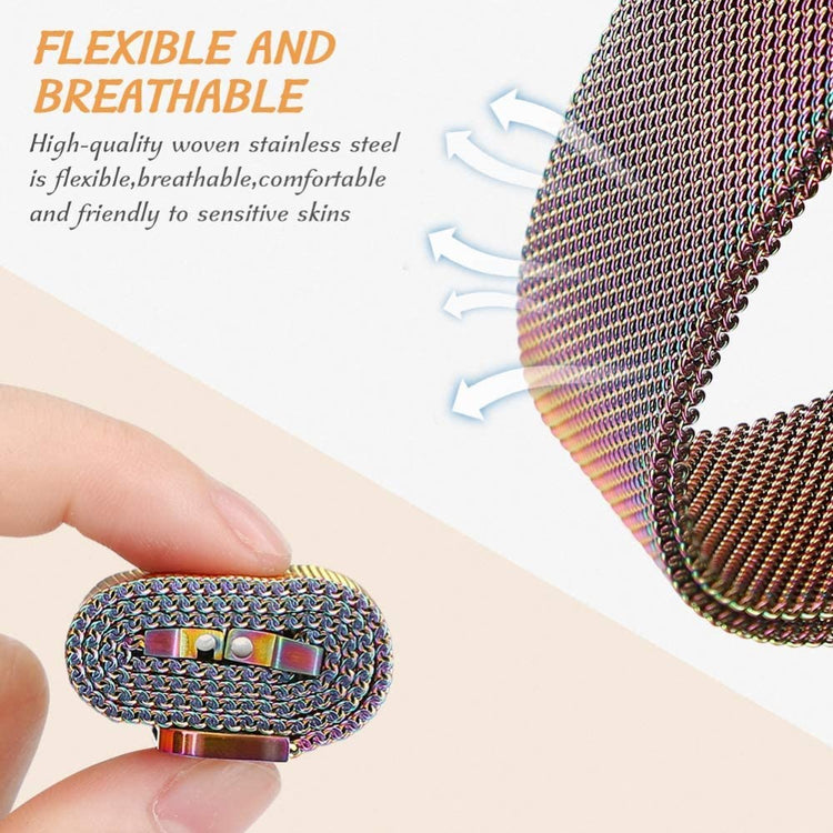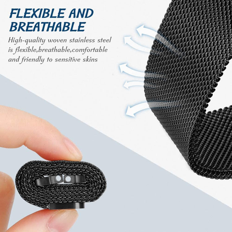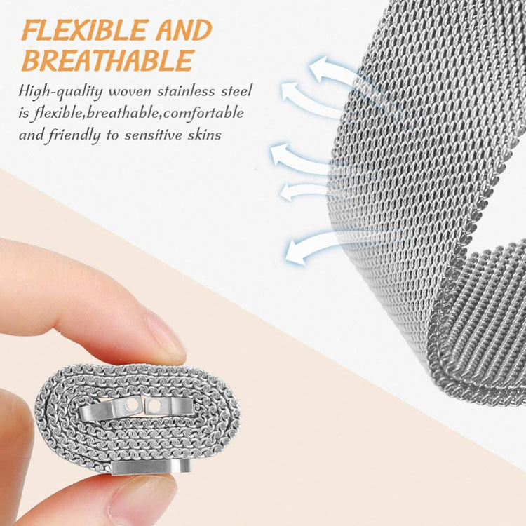 Dieses hochwertige Ersatz-Armband aus Edelstahl im Mailänder Stil verleiht Ihrer Smartwatch einen edlen und robusten Look. Dank des magnetischen Verschlusses sitzt das Armband sicher und bequem am Handgelenk.