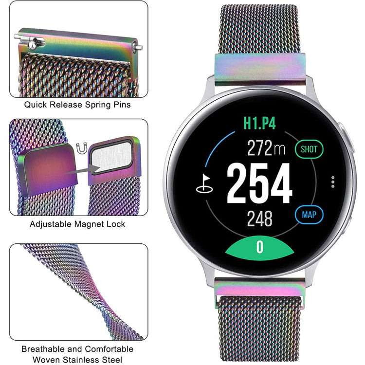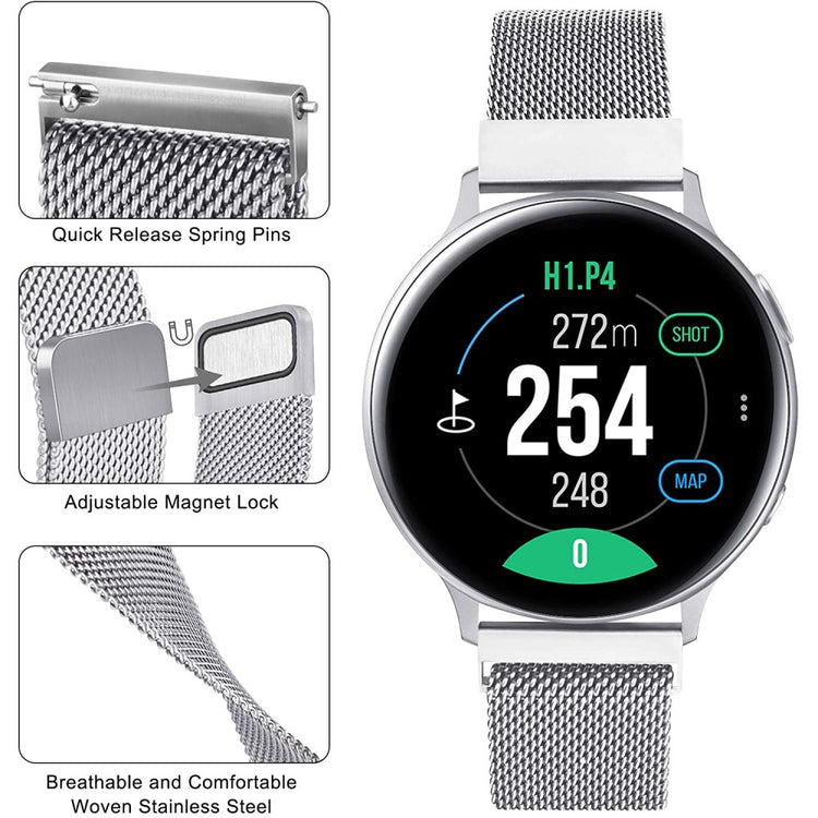 Das JLT Magnetic Absorption Design ist ein hochwertiges, austauschbares Milanese-Armband aus Edelstahl, das für viele Smartwatches geeignet ist, darunter die Samsung Galaxy Watch 3 und Huawei Watch 2. Dank des magnetischen Designs lässt sich die Größe individuell anpassen und das Armband bleibt sicher geschlossen. Dieses Armband ist die ideale Ersatzlösung für Ihr altes oder beschädigtes Armband und bietet eine exquisite und langlebige Qualität.