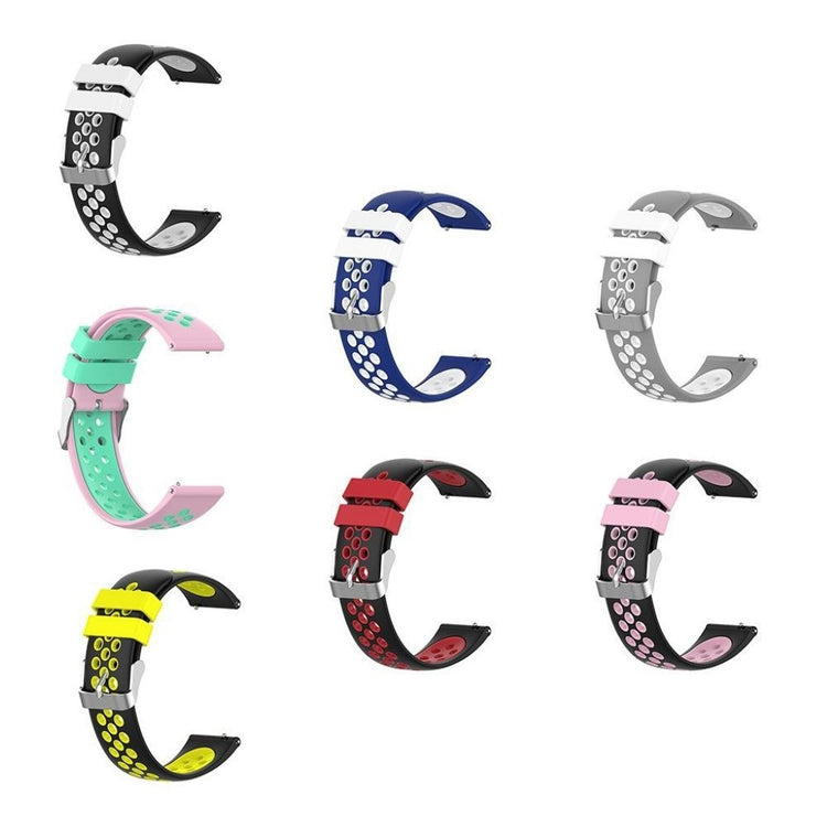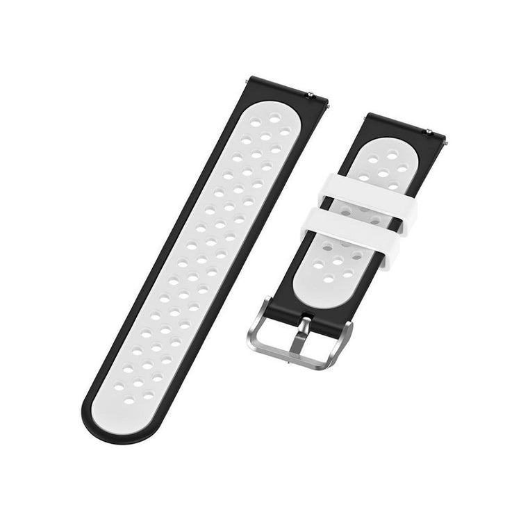 Das 22mm Bi-Color Silikonarmband für Samsung S3/S4/Galaxy Watch 46mm besteht aus öko-freundlichem Silikonmaterial, das verschleißfest ist. Das innovative Design mit mehreren Löchern ermöglicht eine einfache Anpassung der Größe und sorgt für einen frischen Look am Handgelenk. Es ist die ideale Armband-Ersetzung für Ihr altes, defektes Armband.