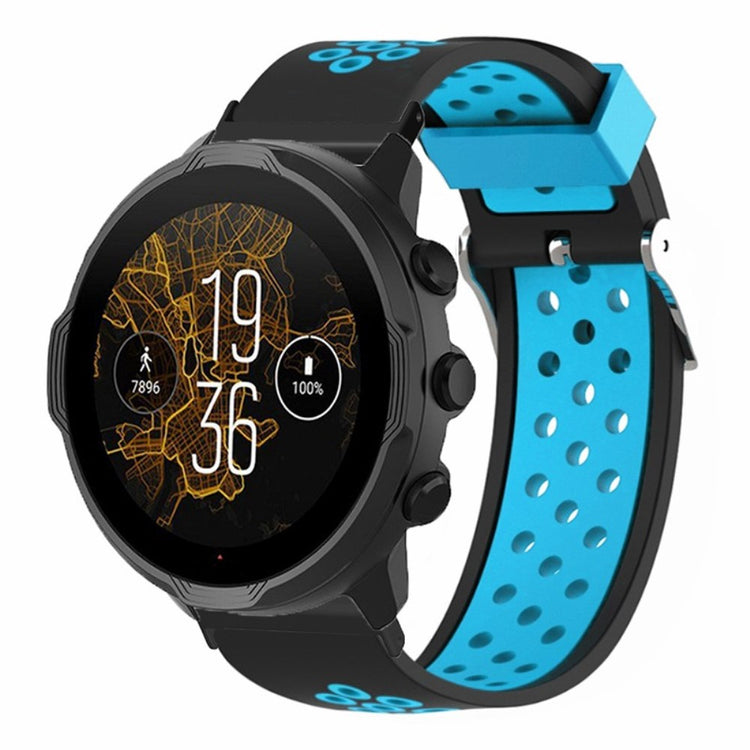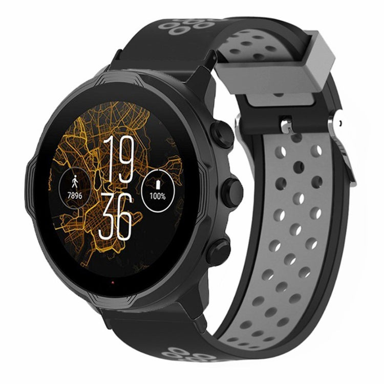 Suunto Spartan Sport Wrist HR Baro / Suunto 7 Watch Band 24mm Flexible Strap Replacement with Breathable Holes - Black+Red