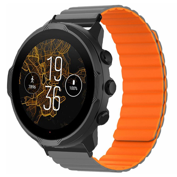 Suunto Spartan Sport Wrist HR Baro / Suunto 7 Magnetic Band 24mm Silicone Watch Strap - Black+Orange