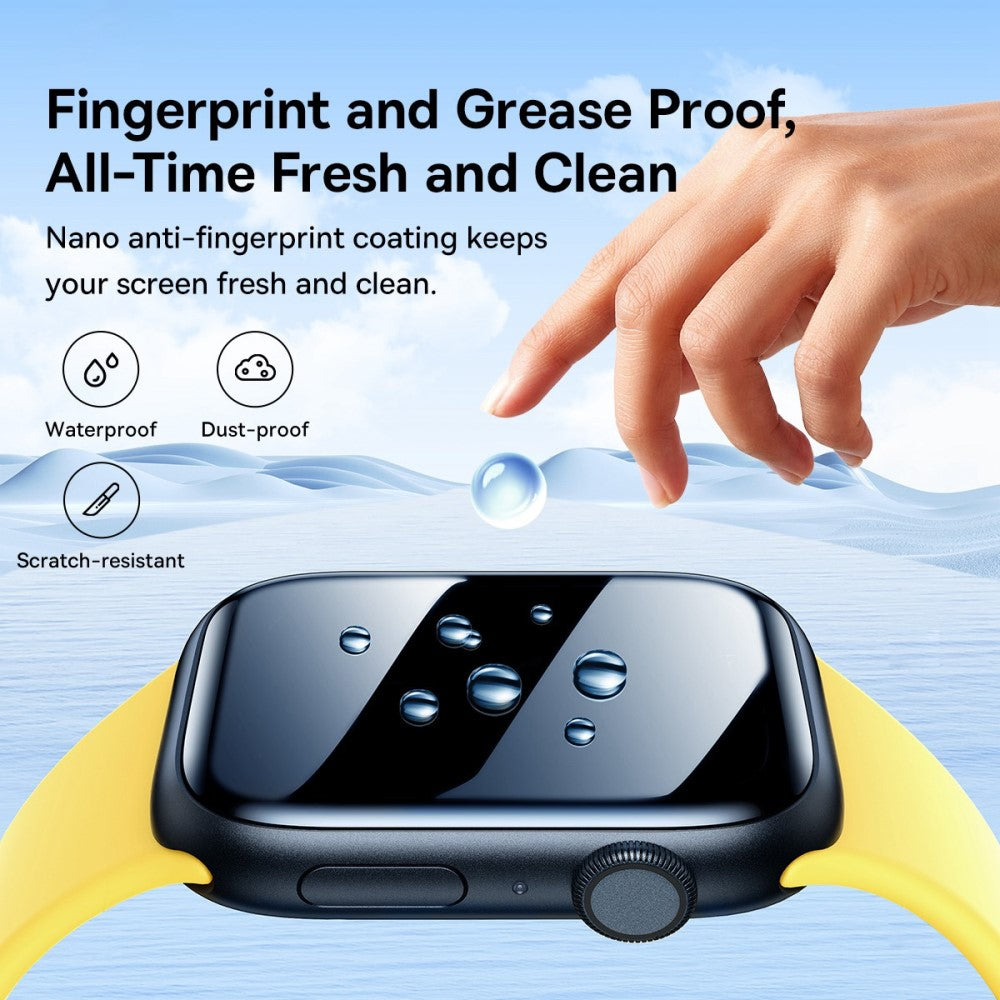 Schützen Sie Ihre Apple Watch mit dem BASEUS 2Pcs Screen Protector optimal vor Kratzern und Beschädigungen. Diese hochwertige Schutzhülle besteht aus erstklassigem PMMA-Material, das sowohl weich als auch robust ist, und bietet somit einen ausgezeichneten Schutz für den Bildschirm. Das vollständige Design sorgt dafür, dass der gesamte Bildschirm wirksam vor alltäglichen Kratzern geschützt ist. Mit einer 8K ultra Klarheit und einer Lichtdurchlässigkeit von bis zu 98% erleben Sie eine fast unveränderte Sicht auf Ihren Bildschirm, während die delicate Touch-Beschichtung eine hervorragende Berührungsempfindlichkeit bietet, die sich natürlich anfühlt. Darüber hinaus sorgt die Nano-Anti-Fingerprint-Beschichtung dafür, dass Ihr Bildschirm frisch und sauber bleibt. Der 120° gebogene Bildschirm ermöglicht ein sanftes Gefühl bei der Nutzung und gewährleistet eine sichere Anwendung. Schützen Sie die Anzeige Ihrer Uhr lückenlos und genießen Sie die Vorteile eines klaren, kratzfreien Bildschirms!