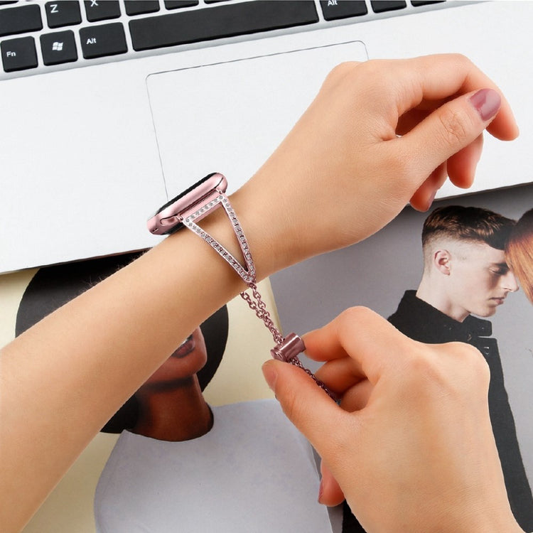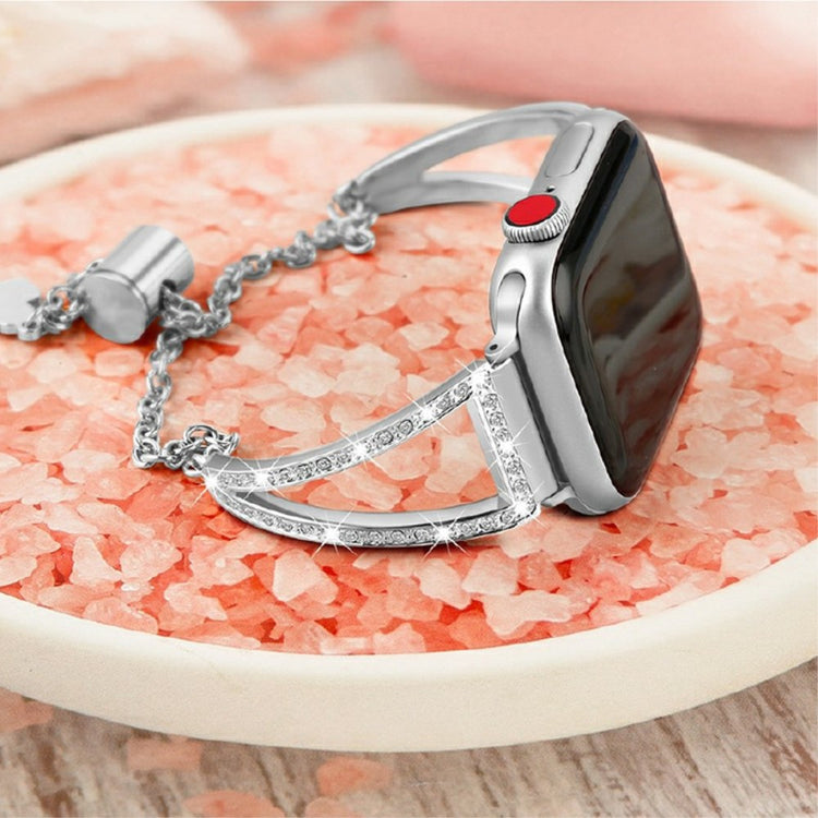 Entscheiden Sie sich für dieses Rhinestone Decor Glitter Handgelenkband als ideale Ergänzung für Ihre Apple Watch Series 9 / 8 / 7 41mm und weitere Modelle. Hergestellt aus hochwertigem Metallmaterial, überzeugt dieses Armband durch seine exquisite Verarbeitung und langlebige Qualität. Der glänzende Rhinestone-Schmuck verleiht Ihrem Handgelenk eine elegante und stilvolle Note. Dank der perfekten Politur gibt es keine scharfen Kanten, was für zusätzlichen Tragekomfort sorgt. Dieses Armband ist wasserdicht und schweißfest, sodass Sie es bedenkenlos im Alltag tragen können. Mit dem verstellbaren Schiebeschloss lässt sich die Bandgröße individuell anpassen, ganz ohne Werkzeug. Es ist die ideale Ersatzlösung für Ihr altes oder beschädigtes Armband und passt sich perfekt Ihrem Handgelenk an, das einen Umfang von 160 bis 200 mm hat. Gönnen Sie Ihrer Apple Watch den Luxus und Stil, den sie verdient!