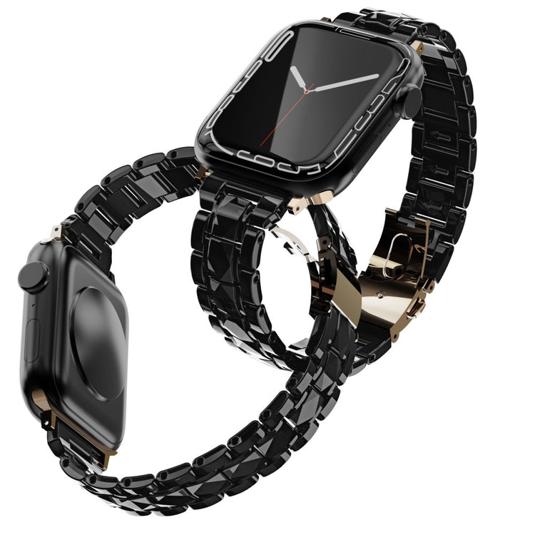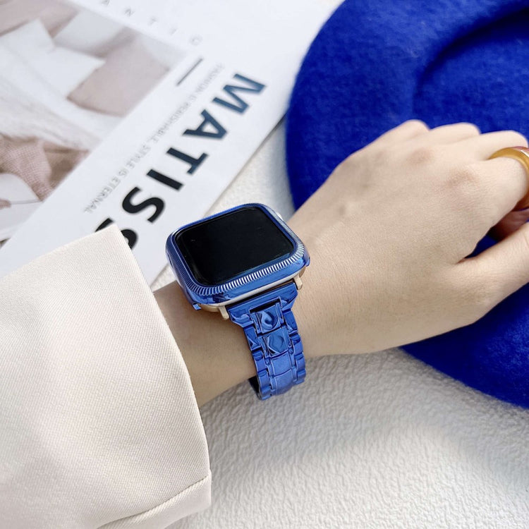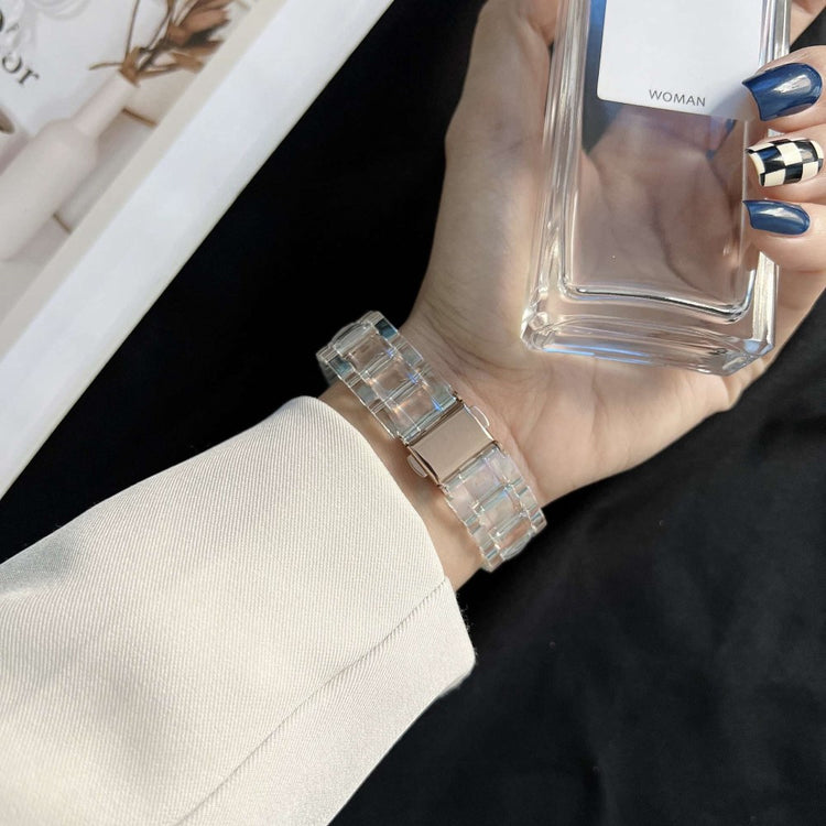 Entscheiden Sie sich für das Elektroplating Acryl Uhrenarmband, um Ihre Apple Watch Series 9 / 8 / 7 41mm / 6 / 5 / 4 / SE (2023) / SE (2022) / SE 40mm / 3 2 1 38mm in ein modisches Accessoire zu verwandeln. Dieses Armband ist aus hochwertigem Acryl gefertigt, das nicht nur wasserdicht, sondern auch schmutzabweisend ist, sodass es auch bei aktivem Lebensstil immer gut aussieht. Die exquisite Elektroplating Verarbeitung verleiht dem Armband einen glänzenden, metallischen Glanz, der garantiert alle Blicke auf sich zieht. Dank der durchdachten Konstruktion bietet dieses Armband eine längere Lebensdauer, eine verbesserte Qualität und ein äußerst komfortables Tragegefühl, sodass Sie es den ganzen Tag über genießen können. Der metallische Klappverschluss sorgt für zusätzliche Sicherheit und ermöglicht ein einfaches An- und Ablegen, was den täglichen Gebrauch erleichtert. Ersetzen Sie Ihr altes oder beschädigtes Armband durch dieses stilvolle, praktische und hochwertige Armband, das sich perfekt an Ihren Handgelenksumfang von 160mm bis 220mm anpasst. Wählen Sie die passende Größe und heben Sie den Look Ihrer Uhr auf ein neues, fashionables Niveau!