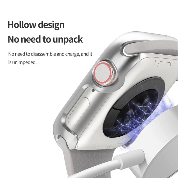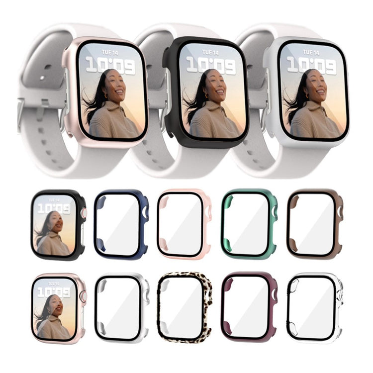 Diese robuste Schutzhülle aus Hart-PC mit integrierter Displayschutzfolie aus gehärtetem Glas ist kompatibel mit der Apple Watch Series 9 / 8 / 7 (41mm) sowie 4 / 5 / 6 / SE / SE (2022) (40mm). Sie bedeckt sowohl das Display als auch die Kanten und bietet 360-Grad-Schutz für Ihre Uhr vor Kratzern, Stößen und versehentlichem Herunterfallen.
