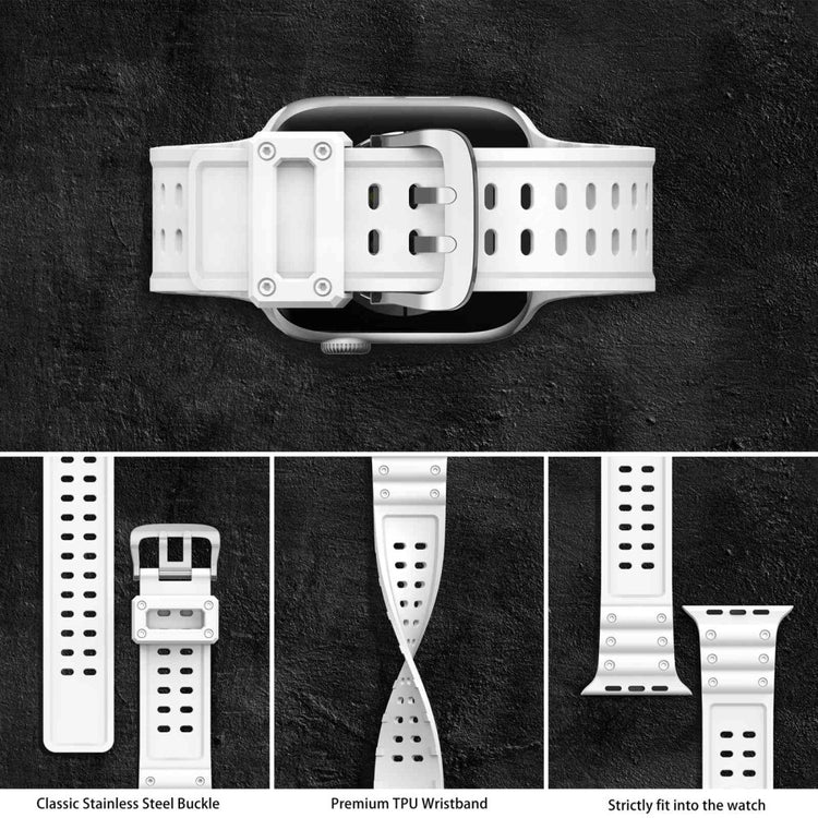 Entscheiden Sie sich für dieses hochwertige, wasserfeste Silikonarmband, das speziell für die Apple Watch Series 9 / 8 / 7 / 6 / 5 / 4 / SE (2022) / SE (2023) / SE / 3 / 2 / 1 entwickelt wurde! Die Verwendung von erstklassigem Silikonmaterial sorgt für ein weiches und angenehmes Tragegefühl, während das strapazierfähige Design sowohl wasser- als auch schweißfest ist, sodass es ideal für aktive Nutzer ist. Dank des cleveren Zwei-Reihen-Loch-Designs lässt sich die Größe mühelos anpassen, um maximalen Komfort zu gewährleisten. Dieses Armband ist die perfekte Alternative zu Ihrem alten oder beschädigten Band und lässt sich ganz einfach installieren und entfernen. Wählen Sie aus mehreren verfügbaren Größen, um es ideal an Ihr Handgelenk (160-220mm) anzupassen! Setzen Sie auf Stil und Funktionalität mit diesem unverzichtbaren Ersatzarmband!