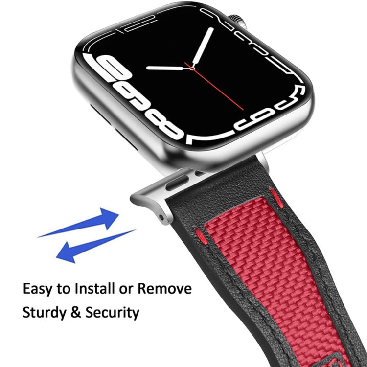Wenn Sie auf der Suche nach einem neuen Armband für Ihre Apple Watch sind, ist unser hochwertiges Stitching Watch Band aus Canvas Nylon und Rindsleder die perfekte Wahl. Dieses Armband vereint Stil und Komfort, sodass Sie es den ganzen Tag tragen können, ohne dabei auf Bequemlichkeit zu verzichten. Dank der Metall-Schnalle lässt sich das Armband mühelos an- und ablegen. Die zahlreichen Verstellmöglichkeiten ermöglichen eine individuelle Anpassung an Ihr Handgelenk. Ob als Ersatz für ein altes oder beschädigtes Armband oder einfach, um Ihrem Look einen frischen Akzent zu verleihen – dieses Armband ist die ideale Wahl für jede Gelegenheit. Darüber hinaus bieten wir Ihnen eine Auswahl an Farben, die verschiedenen Stilrichtungen gerecht werden. Gönnen Sie Ihrer Apple Watch das Upgrade, das sie verdient!