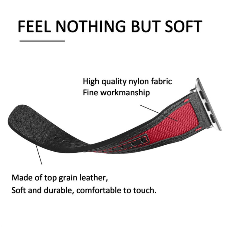 Dieses Armband aus hochwertigem Nylongewebe und echtem Rindsleder bietet einen weichen und bequemen Tragekomfort. Es ist kompatibel mit der Apple Watch Series 9 / 8 / 7 (41mm), 6 / 5 / 4 / SE / SE (2022) / SE (2023) (40mm) und 3 / 2 / 1 (38mm).