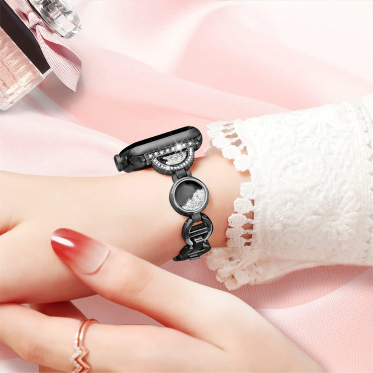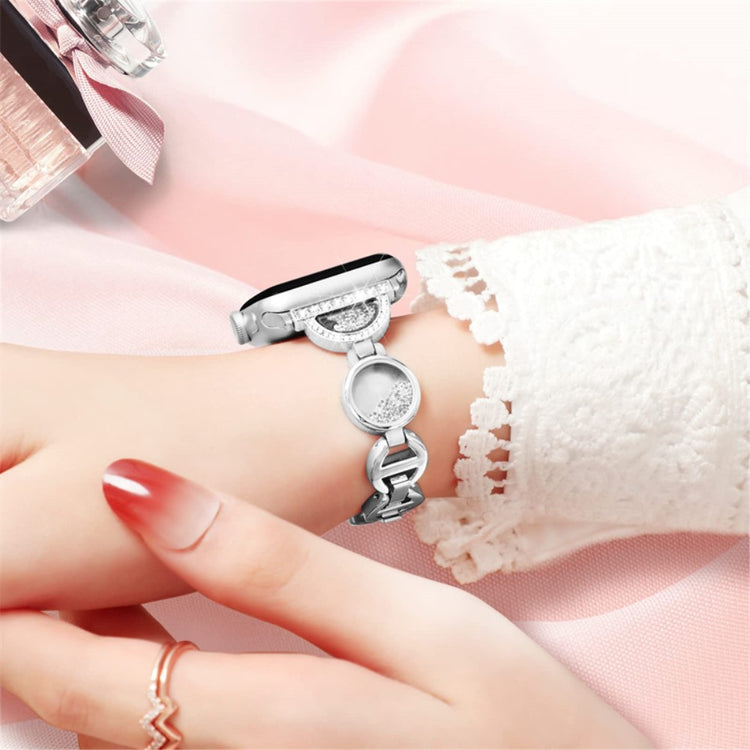 Entdecken Sie das perfekte Zubehör für Ihre Apple Watch mit unserem Armband aus hochwertigem Edelstahl, das für die Modelle Series 9 / 8 / 7 41mm / 6 / 5 / 4 / SE (2022) / SE (2023) 40mm / 3 / 2 / 1 38mm geeignet ist. Dieses Armband vereint Haltbarkeit und Sicherheit und bietet einen ausgezeichneten Tragekomfort. Mit einem einzigartigen Quicksand-Design und funkelnden Rhinestones verleiht es Ihrer Uhr eine kreative und elegante Note, die überall und jederzeit auffällt. Die einfache Längenanpassung ermöglicht es Ihnen, das Armband optimal an Ihr Handgelenk anzupassen, während es präzise und sicher an Ihrer Uhr befestigt ist. Die Installation und Abnahme ist kinderleicht, sodass Sie im Handumdrehen das Aussehen Ihrer Uhr verändern können. Überzeugen Sie sich selbst von der vielfältigen Anpassungsfähigkeit und dem stilvollen Design dieses Armbands – es ist die perfekte Ergänzung für Ihre Apple Watch.