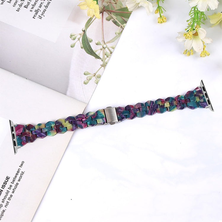 Entscheiden Sie sich für unser hochwertiges Armband aus Resin für Ihre Apple Watch, das nicht nur widerstandsfähig gegen Wasser und Rost ist, sondern auch einen eleganten Look bietet. Dank der geschickten Handpolierung durch erfahrene Handwerker erhält jedes Armband eine besondere Note. Das durchdachte Design mit einem Drei-Perlen-Resin-Armband und einem Edelstahladapter garantiert nicht nur eine einfache Handhabung, sondern auch eine sichere Befestigung Ihrer Uhr. Mit dem praktischen Klappverschluss mit Doppelknopf-Sicherheitsverschluss ist ein einfaches An- und Ablegen jederzeit möglich. Diese stilvolle Ergänzung eignet sich hervorragend für besondere Anlässe, Geschäftstermine, Reisen und festliche Anlässe. Verleihen Sie Ihrer Apple Watch einen Hauch von Eleganz und Exklusivität, der sowohl im Alltag als auch bei besonderen Gelegenheiten glänzt.