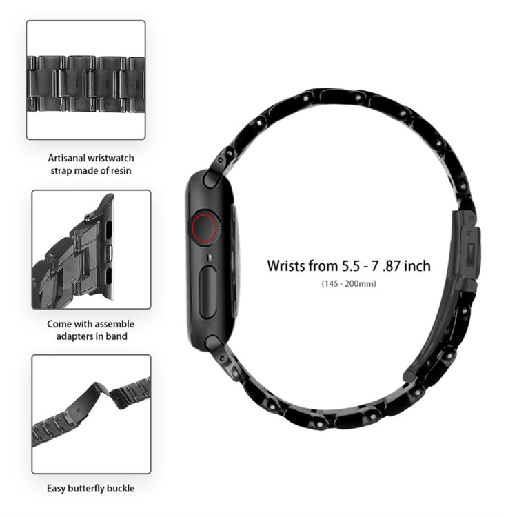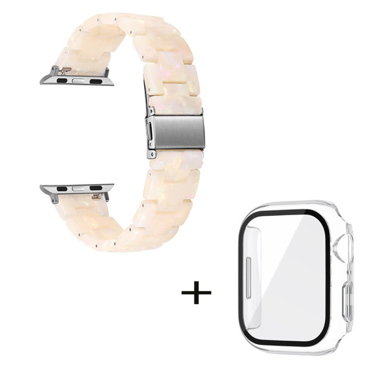 Entscheiden Sie sich für unser hochwertiges 3-Perlen-Resin-Uhrenarmband mit faltbarem Verschluss und transparentem Uhrengehäuse, um Ihrer Apple Watch Series 6 / 5 / 4 / SE / SE (2022) 40mm einen eleganten und funktionalen Look zu verleihen. Das Armband besteht aus hochwertigem Resinmaterial, das sowohl wasserfest als auch rostbeständig ist, sodass Sie es in verschiedenen Umgebungen sorgenfrei tragen können. Jedes Stück Resin wird von erfahrenen Handwerkern handpoliert, was nicht nur die Qualität erhöht, sondern auch für eine ansprechende Optik sorgt. Der praktische feste Edelstahlverschluss sorgt für ein sicheres Tragegefühl und macht das An- und Ablegen des Armbands zu einem Kinderspiel. Das flexible Design ermöglicht eine einfache Demontage und den Austausch des Armbands bei Bedarf. Darüber hinaus schützt das transparente Uhrengehäuse Ihre Uhr vor Stößen, Kratzern und anderen Beschädigungen, sodass sie immer in einwandfreiem Zustand bleibt. Mit einer Handgelenkgröße von 5.5 bis 7.87 Zoll (140-200 mm) ist dieses Set eine hervorragende Wahl für jeden Apple Watch-Nutzer, der Stil und Schutz in einem sucht.