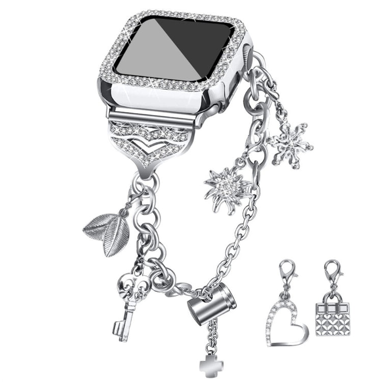 Mit mehreren Clip-on-Anhängern und zwei Reihen funkelnder Strasssteine verleiht dieses Armband Ihrer Apple Watch einen Hauch von Eleganz und Glamour. Die sorgfältige Politur sorgt für glatte Kanten und einen angenehmen Tragekomfort. Das Armband ist wasser- und schweißfest.