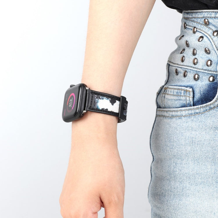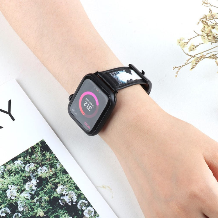 Verleihen Sie Ihrer Apple Watch einen individuellen Look mit diesem Lederarmband mit Berg- und Wasserlandschaft-Muster. Das hochwertige Ledermaterial bietet eine angenehme Weichheit und ist dank der feinen Verarbeitung sowohl komfortabel zu tragen als auch langlebig.