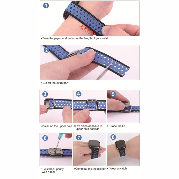 Die Länge des Armbandes lässt sich einfach und schnell durch Abschneiden des überschüssigen Materials anpassen. Mehrere Löcher ermöglichen eine präzise Einstellung der Größe und sorgen für den perfekten Sitz an Ihrem Handgelenk.