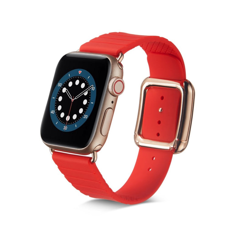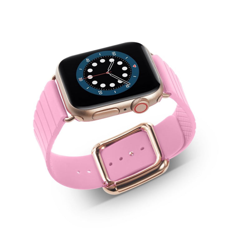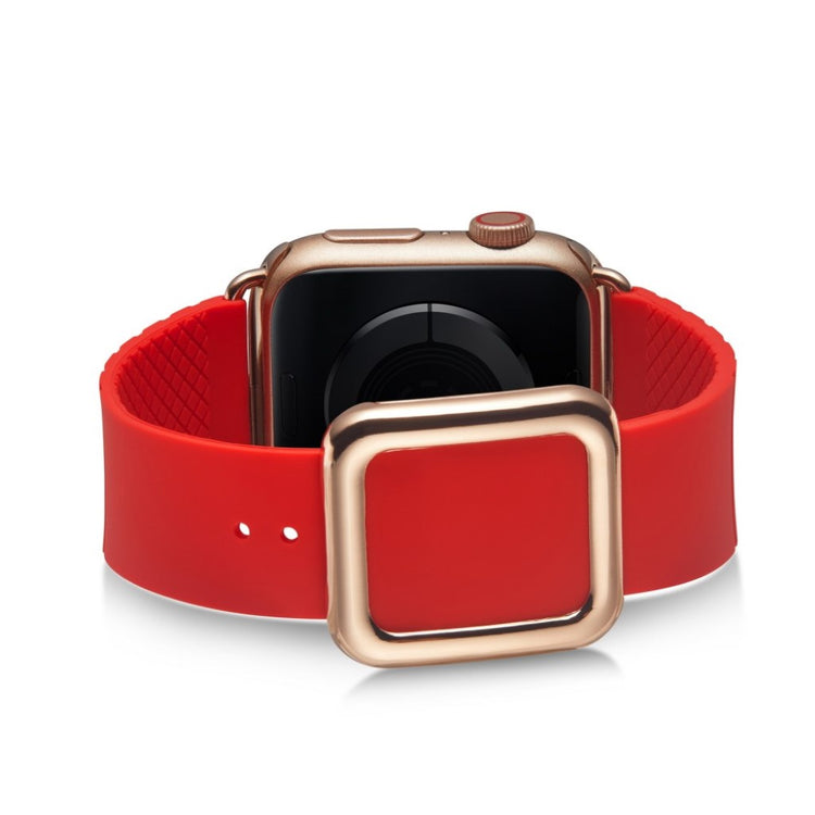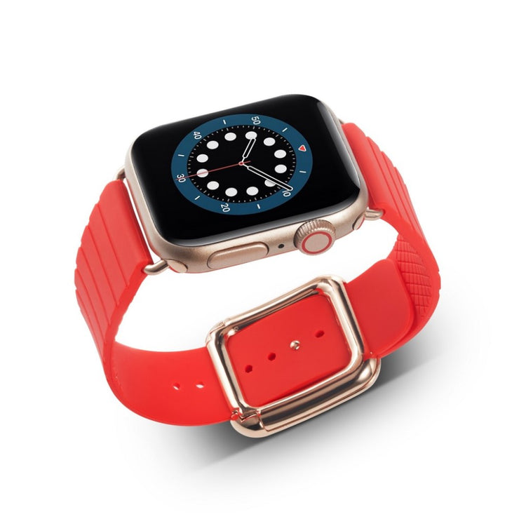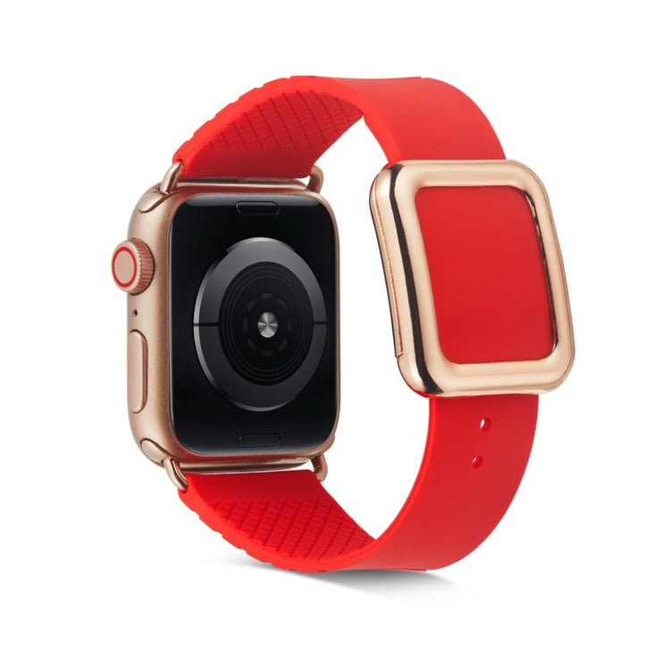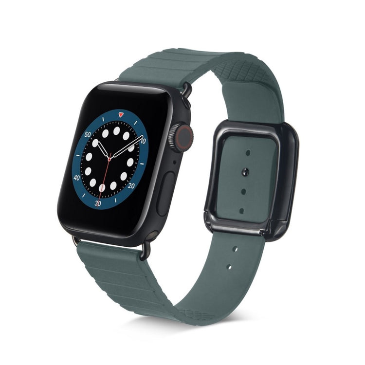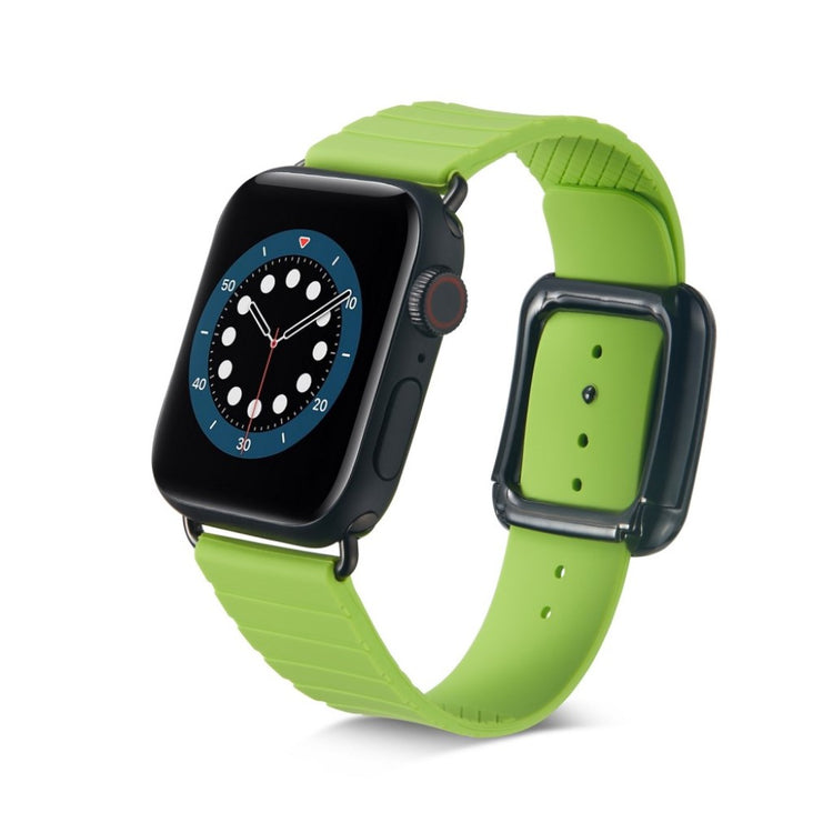Modernes Armband aus weichem Silikon mit quadratischer Schnalle als Ersatz für Ihre Apple Watch. Das umweltfreundliche Silikonmaterial sorgt für ein angenehmes Tragegefühl. Dank der vielfältigen Farbauswahl finden Sie den perfekten Stil für jeden Anlass.