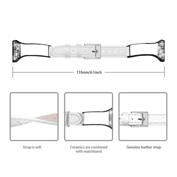 Haylou Solar LS05 / Xiaomi Mi Watch Color Ægte læder og Rhinsten Rem - Hvid#serie_1