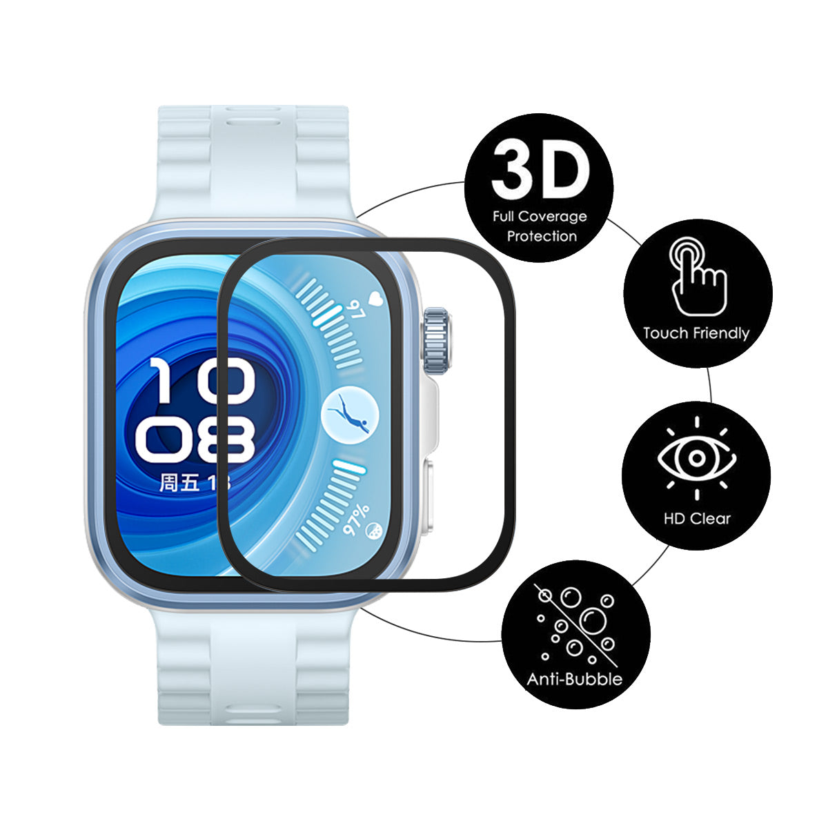 Schützen Sie Ihr Huawei Watch Fit 4 Pro mit einer Schutzfolie.Bitte beachten Sie: Eine Smartwatch ist nicht enthalten.