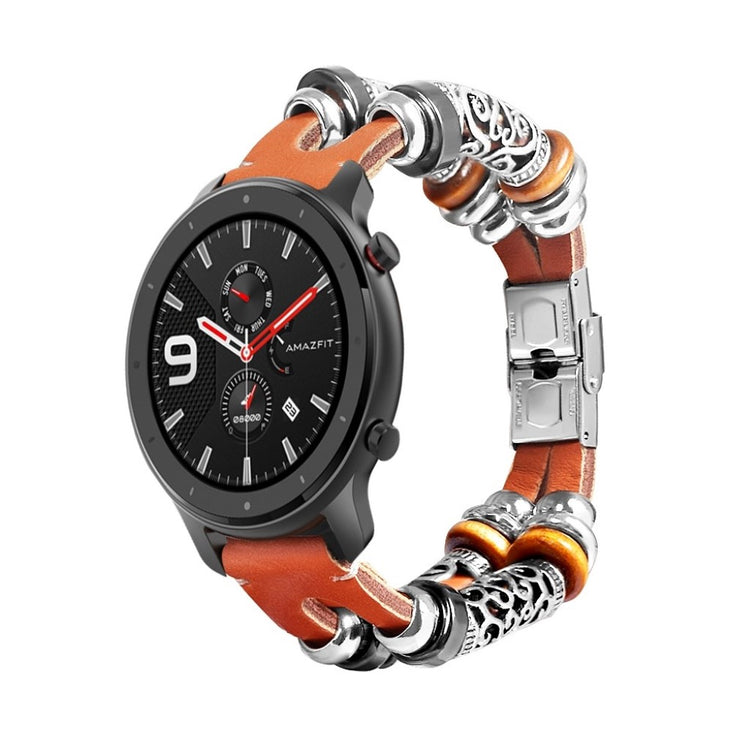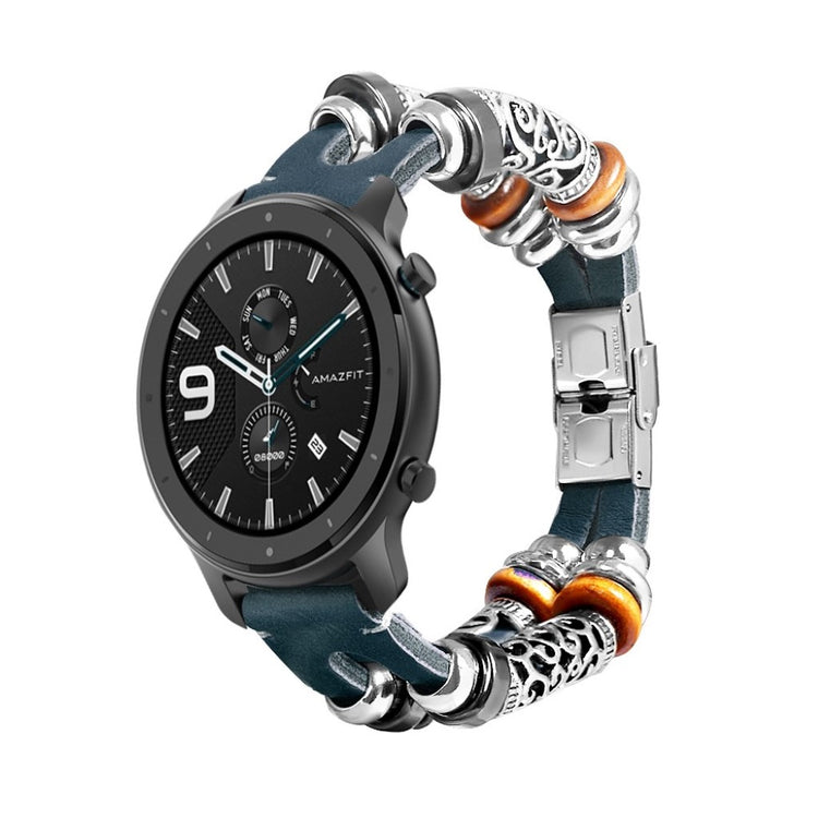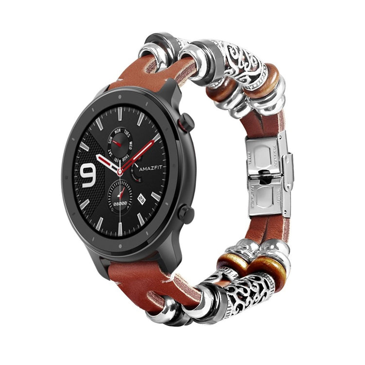 Entscheiden Sie sich für das handgefertigte Retro-Kuhlederarmband, um Ihrem Smartwatch-Erlebnis einen Hauch von Eleganz und Individualität zu verleihen. Hergestellt aus hochwertigem Kuhleder und Legierungsmaterialien, bietet dieses Armband nicht nur eine hautfreundliche Oberfläche, sondern auch eine charmante, modische Retro-Perlenoptik. Die sorgfältige Handarbeit garantiert, dass jedes Stück einzigartig und langlebig ist. Mit den im Lieferumfang enthaltenen Federstiften lässt sich das Armband einfach und sicher an Ihrer Smartwatch befestigen. Es ist geeignet für Handgelenke mit einem Umfang von 135-235 mm und passt auf zahlreiche Modelle, darunter die Huami Amazfit GTR 47mm, Samsung Galaxy Watch 46mm und viele weitere. Diese Vielseitigkeit und die Möglichkeit zur DIY-Gestaltung durch das Hinzufügen von individuellen Perlen machen dieses Armband zu einem perfekten Begleiter für jeden Anlass.