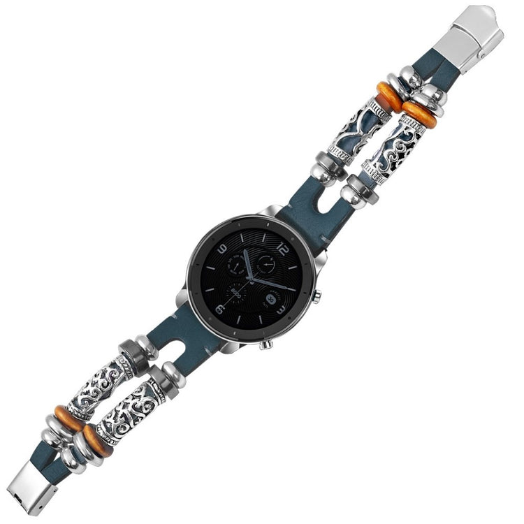 Dieses handgefertigte Uhrenarmband aus Rindsleder und Legierung vereint Komfort und Stil. Der Retro-Look mit Perlen verleiht Ihrer Smartwatch einen charmanten und modischen Touch. Das Armband ist nicht nur langlebig, sondern auch hautfreundlich und bietet dank der mitgelieferten Federstege einen sicheren Halt. Die Montage und der Wechsel des Armbandes sind kinderleicht.