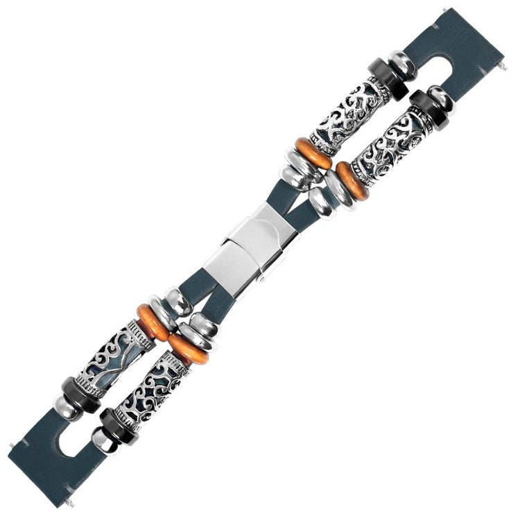 1 x 22mm Handgefertigtes Retro Lederarmband mit Perlen (Uhr nicht enthalten)