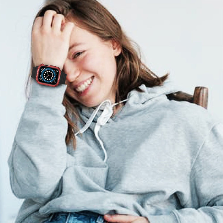 Verleihen Sie Ihrer Apple Watch mit unserem integrierten TPU-Armband und PC-Uhrengehäuse einen neuen Look! Dieses robuste und verschleißfeste Armband bietet nicht nur hervorragende Haltbarkeit, sondern ermöglicht es Ihnen auch, Ihre Uhr einzigartig und attraktiv zu gestalten. Es ist eine ideale Ersatzlösung für Ihr altes, beschädigtes Armband und passt perfekt zu jedem Anlass – sei es bei der Arbeit, auf einer Verabredung, beim Reisen oder im Alltag. Dank des durchdachten Designs ist das Armband einfach zu installieren und zu entfernen, was es besonders benutzerfreundlich macht. Mit einer Länge von 95,5 + 112 mm und einer Anpassung für Handgelenke mit einem Umfang von 135-235 mm ist es für viele Benutzer geeignet. Genießen Sie den Komfort eines leichten Materials (nur 23,3 g) und machen Sie Ihre Smartwatch zum stilvollen Begleiter im Alltag!