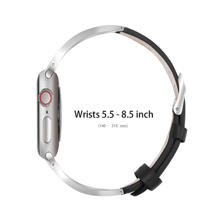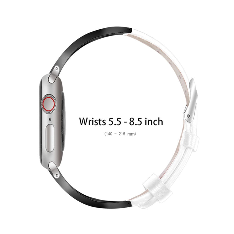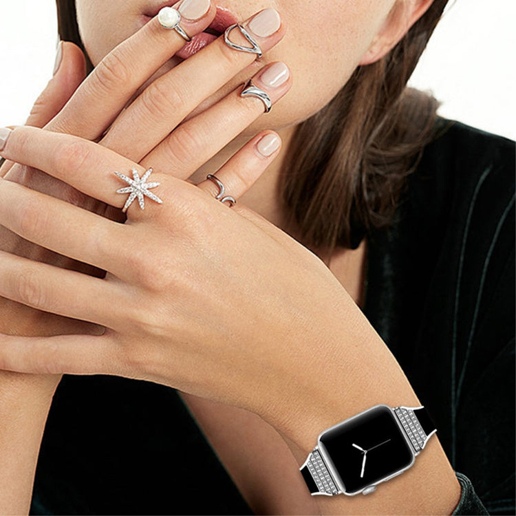 Entscheiden Sie sich für unser hochwertiges Uhrenarmband aus Keramik, Edelstahl und echtem Leder, das speziell für die Apple Watch Series 9 / 8 / 7 und Modelle der Series 6, 5, 4, SE (2023 und 2022), 3, 2 und 1 entwickelt wurde. Dieses Armband bietet nicht nur eine langlebige und komfortable Trageerfahrung, sondern beeindruckt auch durch ein funkelndes Design mit Strasssteinen, das Ihnen einen luxuriösen Look verleiht. Die individuelle Größenanpassung sorgt dafür, dass das Armband perfekt an Ihr Handgelenk angepasst werden kann, egal ob Sie ein kleines oder großes Handgelenk haben. Dieses Armband ist die ideale Alternative für Ihr altes oder beschädigtes Armband und bringt frischen Wind in Ihr Zubehör. Mit einer Armbandlänge von 160 mm eignet es sich perfekt für Handgelenke mit einem Umfang von 5,5 bis 8,5 Zoll. Investieren Sie in Stil und Komfort – mit unserem exquisiten Uhrenarmband sind Sie immer bestens ausgestattet.