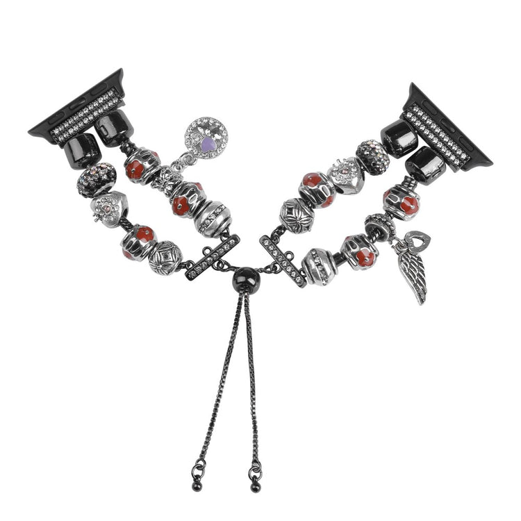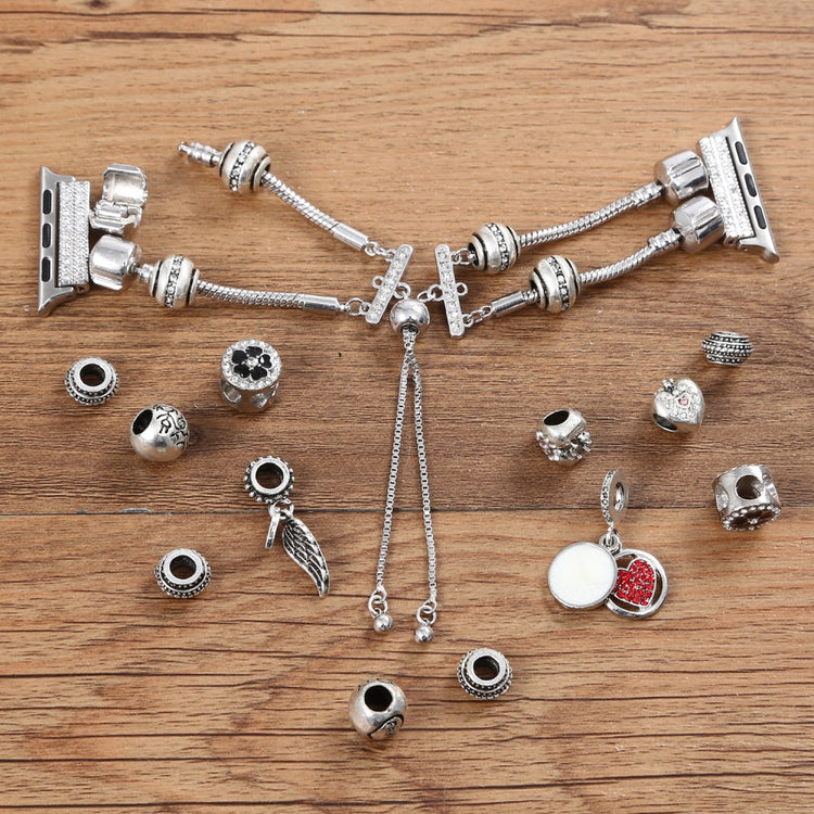 Das Design besticht durch die Kombination aus Perlen und kleinen Metallornamenten, die einen stilvollen und attraktiven Retro-Look kreieren. Die Perlen sind abnehmbar, sodass Sie das Armband individuell gestalten und Ihren eigenen Stil zum Ausdruck bringen können.