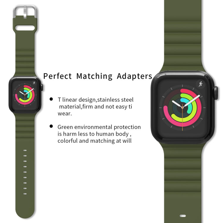 Entscheiden Sie sich für das horizontale Streifen-Uhrenarmband aus hochwertigem, öko-freundlichem Silikon, das nicht nur langlebig, sondern auch weich und bequem zu tragen ist. Das elegante und dennoch schlichte Design mit horizontalen Streifen verleiht Ihrem Apple Watch eine moderne Note und lässt sich perfekt zu verschiedenen Outfits kombinieren. Durch die mehreren Löcher und die metallische Schnalle lässt sich die Größe individuell anpassen, sodass es für Handgelenke mit einem Umfang von 155 bis 220 mm geeignet ist. Dieses Armband ist die ideale Ersatzlösung für Ihr altes oder beschädigtes Armband und bietet eine bequeme und stilvolle Trageerfahrung. Zudem stehen Ihnen verschiedene Farben zur Verfügung, um Ihren persönlichen Stil zu unterstreichen. Gönnen Sie sich ein Upgrade – Ihre Apple Watch verdient das Beste!