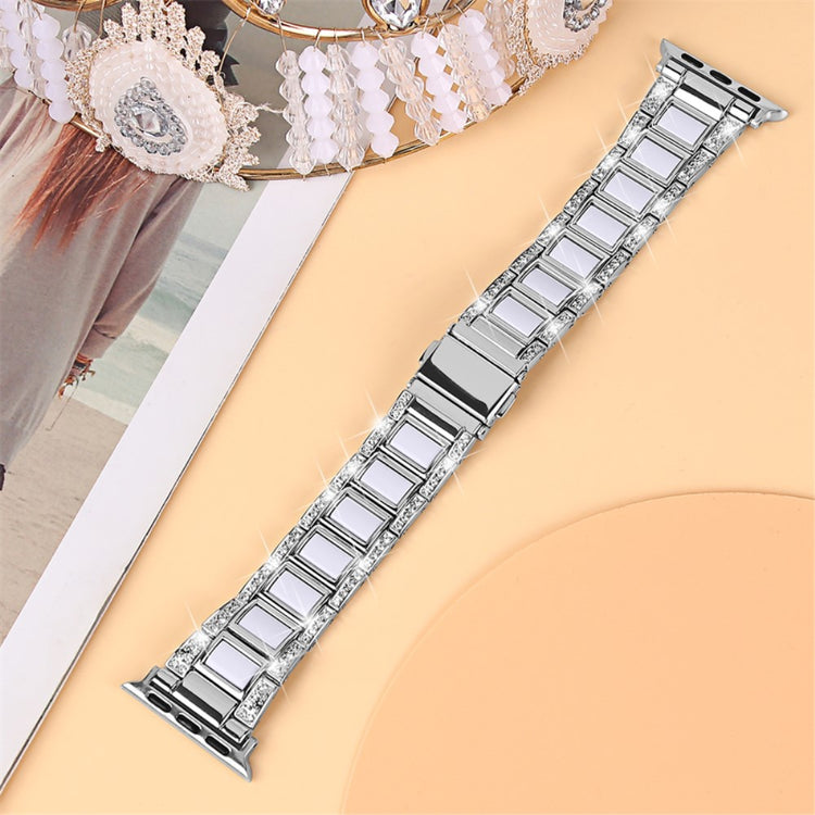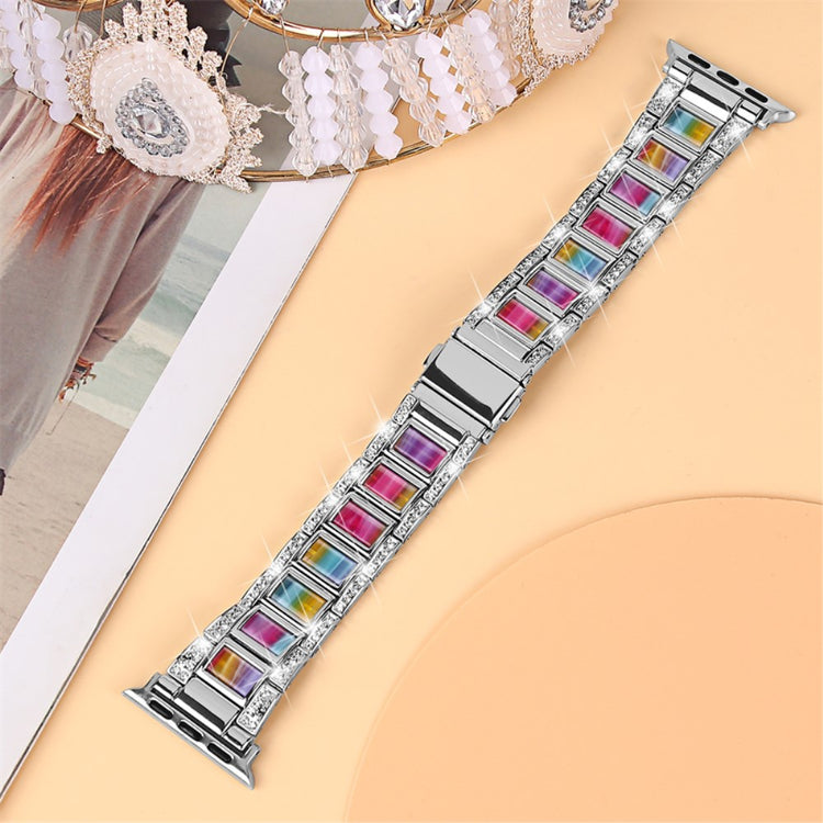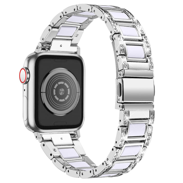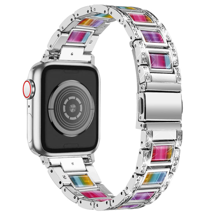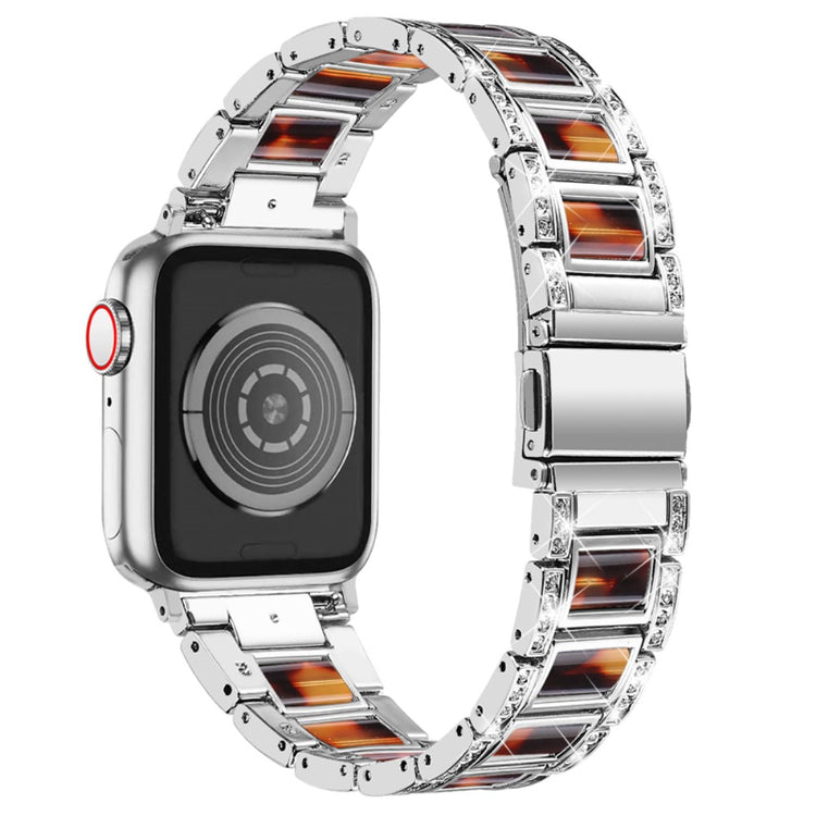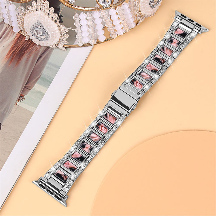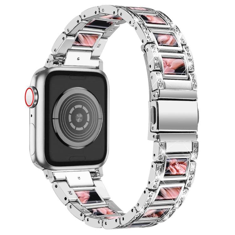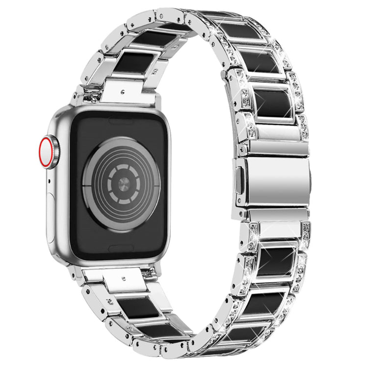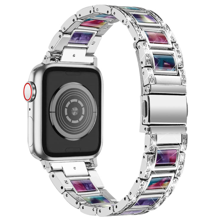 Entscheiden Sie sich für dieses stilvolle Uhrenarmband aus Edelstahl und Resin für Ihre Apple Watch, um Ihrem Smartwatch-Look das gewisse Etwas zu verleihen! Mit glänzenden Rhinestones verziert, ist dieses Armband nicht nur einzigartig, sondern auch äußerst modisch. Hergestellt aus robustem Edelstahl und strapazierfähigen Resin-Blöcken, bietet es eine langlebige und kreative Lösung für Ihre Uhr. Der praktische metallische Klappverschluss sorgt für zusätzliche Sicherheit und ermöglicht ein einfaches An- und Ablegen. Jedes Resineteil wird von erfahrenen Handwerkern sorgfältig geschliffen, was zu einem angenehmen Tragegefühl führt. Wenn Sie Ihr altes oder beschädigtes Armband ersetzen möchten, ist dieses Armband die ideale Wahl für einen neuen, eleganten Look.