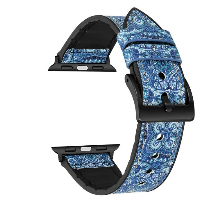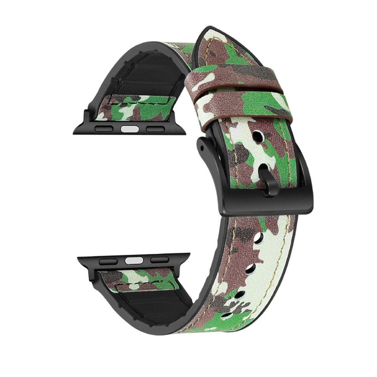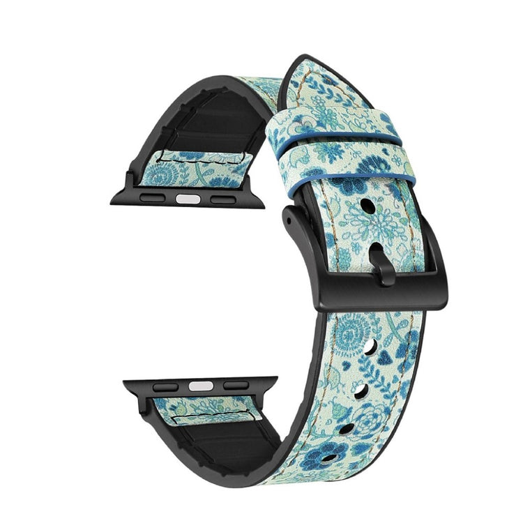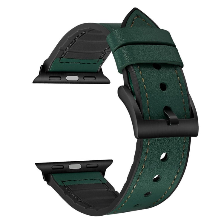 Das Lederbeschichtete Silikon-Uhrenarmband ist ideal für die Apple Watch Ultra 49mm sowie die Serien 7, 8, 6, 5, 4, SE und 3, 2, 1. Es besteht aus Silikonmaterial, das mit PU-Leder überzogen ist, und bietet ein praktisches Lochdesign für eine einfache Größenanpassung. Dieses Armband ist eine perfekte Ersatzlösung für Ihr altes oder defektes Band und lässt sich leicht installieren und entfernen.