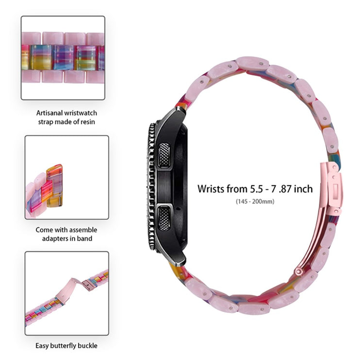 Die 22mm Farb-Splicing Harzarmband mit 3 Perlen und Schmetterlingsverschluss ist die perfekte Wahl für jeden, der seine Smartwatch individuell gestalten möchte. Hergestellt aus hochwertigem Harzmaterial, ist dieses Armband nicht nur wasserdicht, sondern auch rostfrei, was es ideal für den täglichen Gebrauch macht. Der integrierte Edelstahl-Adapter und der praktische Faltverschluss ermöglichen eine einfache Montage und Demontage, sodass Sie Ihr Armband im Handumdrehen wechseln können. Wenn Sie Ihr altes, beschädigtes Armband ersetzen möchten, bietet dieses Modell die perfekte Lösung. Es ist für Handgelenke mit einem Umfang von 145-200 mm geeignet und passt somit den meisten Menschen. Verleihen Sie Ihrer Uhr einen neuen Look und genießen Sie den Komfort und die Langlebigkeit dieses stilvollen Armbands!