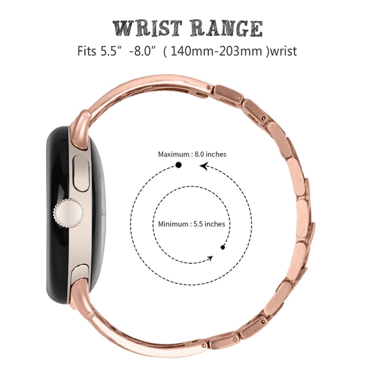 Die Metall-Uhrenarmband für die Google Pixel Watch 2 / Pixel Watch ist ein Must-Have für jede modebewusste Frau. Hergestellt aus hochwertigem 304 Edelstahl, verleiht es Ihrem Handgelenk einen Hauch von Eleganz und Stil. Jedes Stück wird von erfahrenen Handwerkern gefertigt und garantiert eine harte und glatte Oberfläche, die gleichzeitig komfortabel zu tragen ist. Das strapazierfähige Verschlussdesign sorgt für zusätzlichen Schutz Ihrer Uhr, was es sicherer macht als viele andere Verschlüsse. Jedes Detail wurde in der Herstellung hinsichtlich Verarbeitung, Design und Ästhetik sorgfältig durchdacht. Dieses Armband eignet sich hervorragend für besondere Anlässe wie Dates, Meetings, Partys, Reisen, geschäftliche Veranstaltungen und elegante gesellschaftliche Ereignisse. Investieren Sie in ein Accessoire, das Stil und Funktionalität vereint!