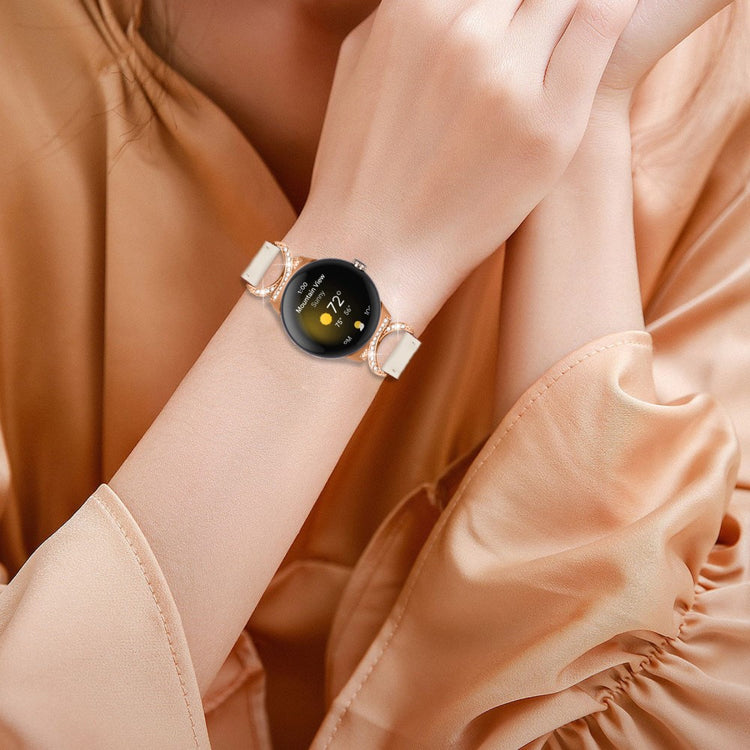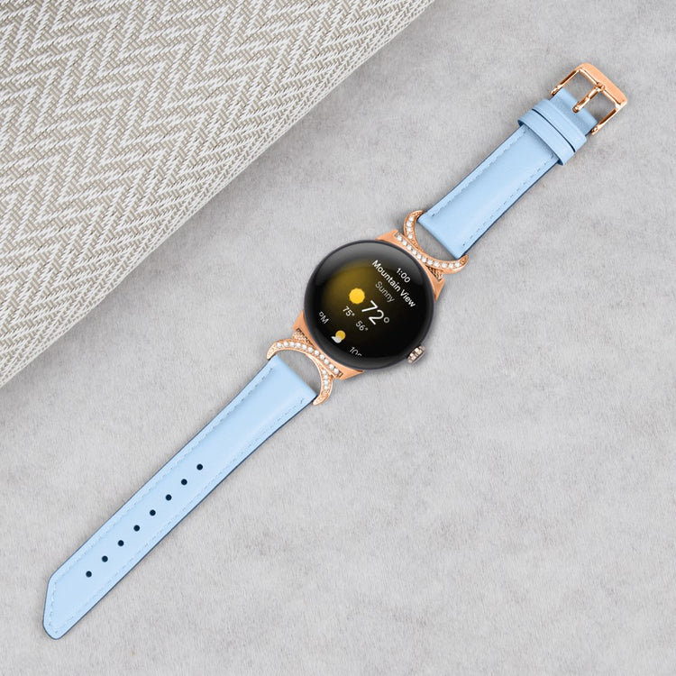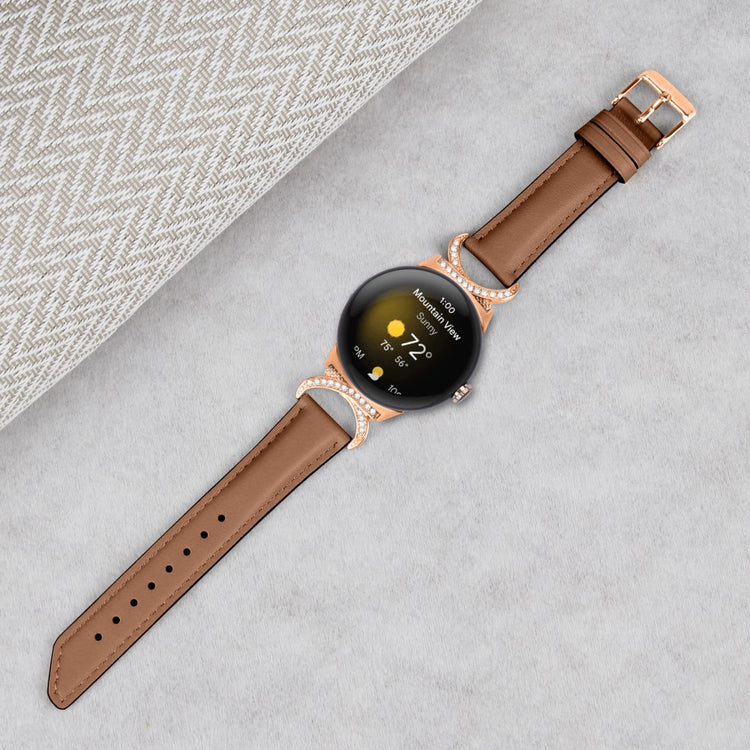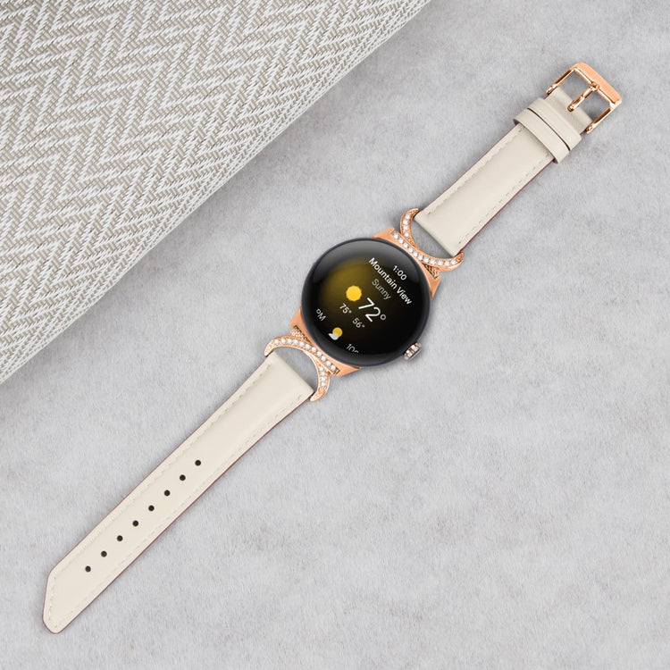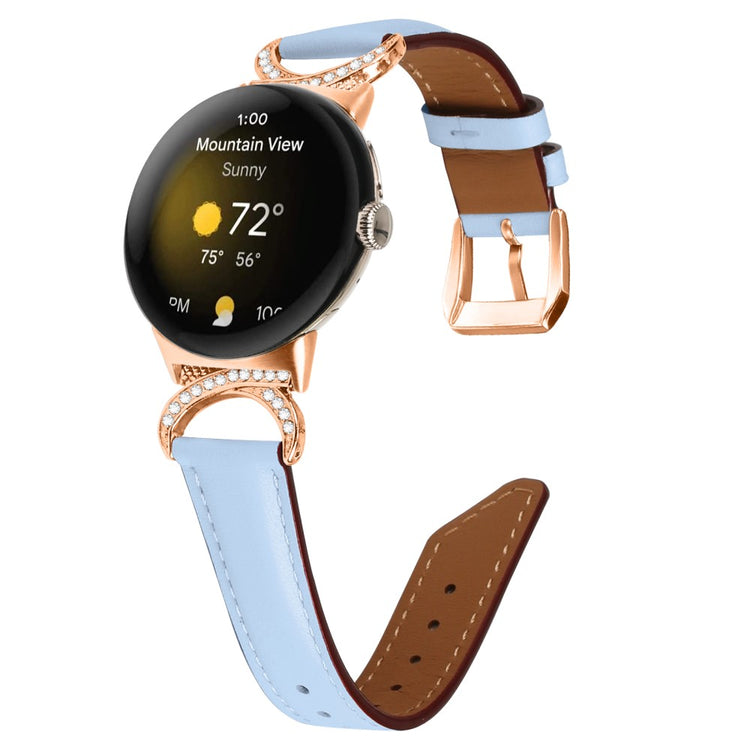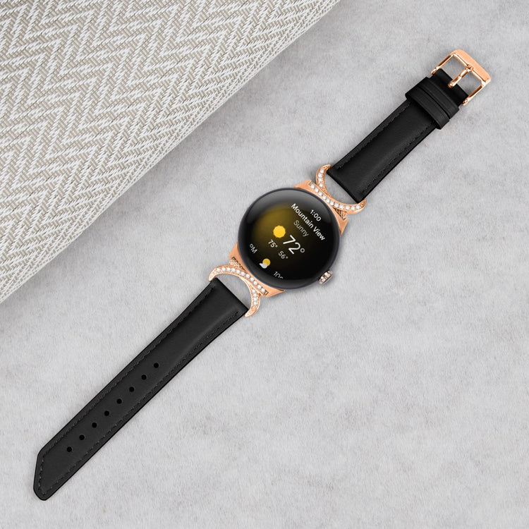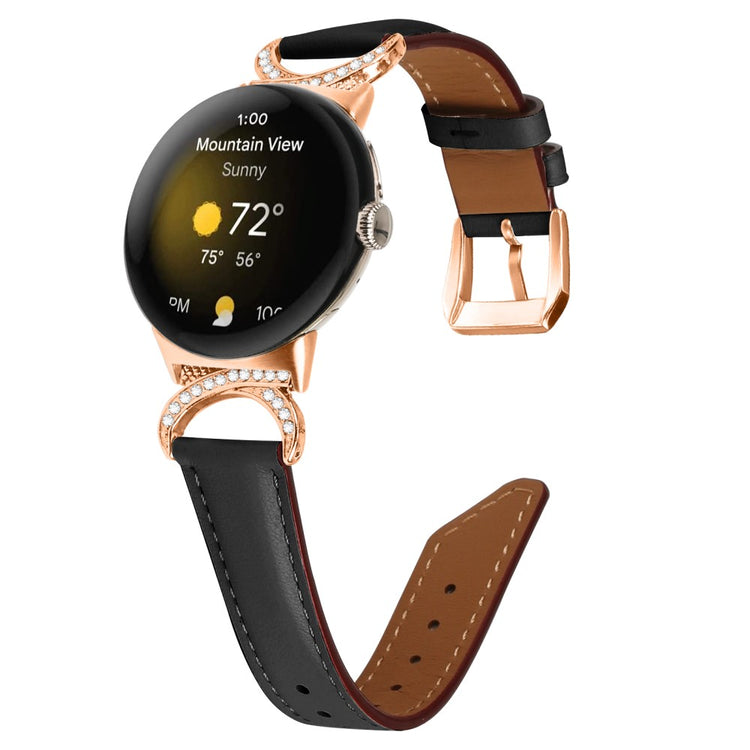 Entscheiden Sie sich für unser hochwertiges Armband für die Google Pixel Watch 2 / Pixel Watch, um Ihrem Alltagslook das gewisse Etwas zu verleihen. Dieses Armband ist aus Rindsleder gefertigt und bietet exquisite Verarbeitung, die sowohl weich als auch bequem ist. Der Rhinestone-Dekor D-förmige Metallverbinder macht das Armband nicht nur eleganter, sondern verleiht auch einen stilvollen Akzent, der alle Blicke auf sich zieht. Mit der robusten Edelstahleschließe und dem durchdachten Design der zahlreichen Löcher lässt sich die Größe mühelos anpassen, sodass Sie stets den perfekten Sitz genießen können. Der schicke, schräg gestaltete Schluss des Armbands sorgt für ein noch schöneres Erscheinungsbild. Es ist die ideale Ersatzlösung für Ihr altes, beschädigtes Armband und macht Ihre Smartwatch zum begehrten Accessoire, das Ihren persönlichen Stil unterstreicht.
