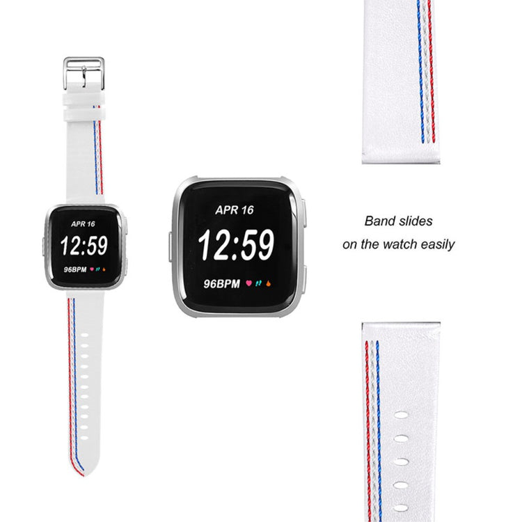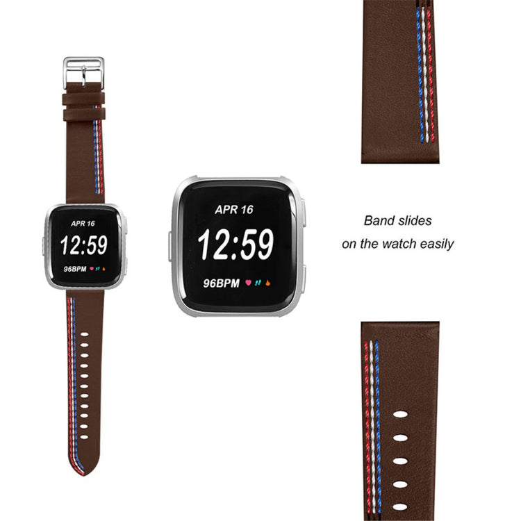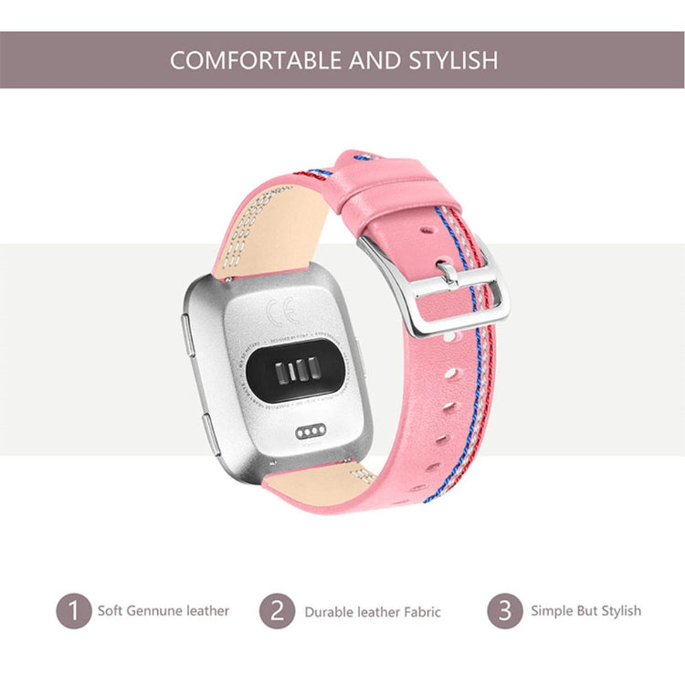 Entscheiden Sie sich für unser Armband aus hochwertigem Rindsleder mit einem eleganten Stichdesign und verleihen Sie Ihrer Smartwatch einen stilvollen Look! Das weiche und angenehme Material sorgt für einen komfortablen Tragekomfort, egal ob im Büro oder in der Freizeit. Mit der edelstahlbeschichteten Schnalle lässt sich das Armband mühelos an- und ablegen, was Ihnen Zeit und Mühe spart. Dank der zahlreichen Verstelllöcher können Sie das Armband ganz einfach an Ihr Handgelenk anpassen und so eine optimale Passform gewährleisten. Es ist die ideale Ersetzung für kaputte oder alte Armbänder und lässt sich unkompliziert installieren und entfernen. Kompatibel mit Fitbit Versa 2, Fitbit Versa, Fitbit Versa Lite und Fitbit Versa SE – das perfekte Upgrade für Ihre Smartwatch!