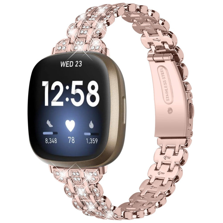 Dieses Armband aus robustem und hochwertigem Metall verleiht Ihrer Fitbit Versa 4 / Sense 2 einen Hauch von Eleganz. Funkelnde Strasssteine sorgen für einen einzigartigen und stilvollen Look und personalisieren Ihre Smartwatch.
