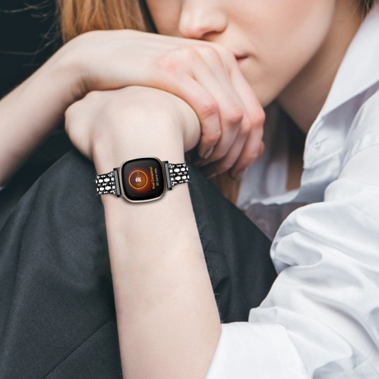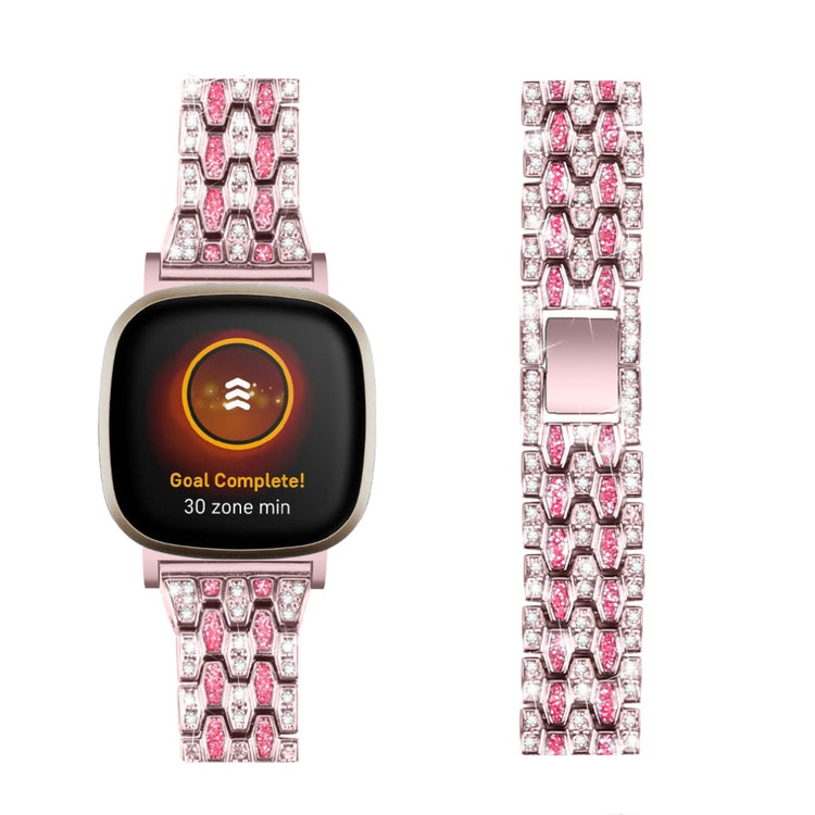 Dieses Armband mit Strassbesatz verleiht Ihrer Fitbit Versa 4 / Sense 2 einen Hauch von Glamour. Hergestellt aus hochwertigem Zinklegierung ist es robust und langlebig. Drei Reihen glänzender Strasssteine sorgen für einen einzigartigen und stilvollen Look, der Ihre Smartwatch personalisiert.