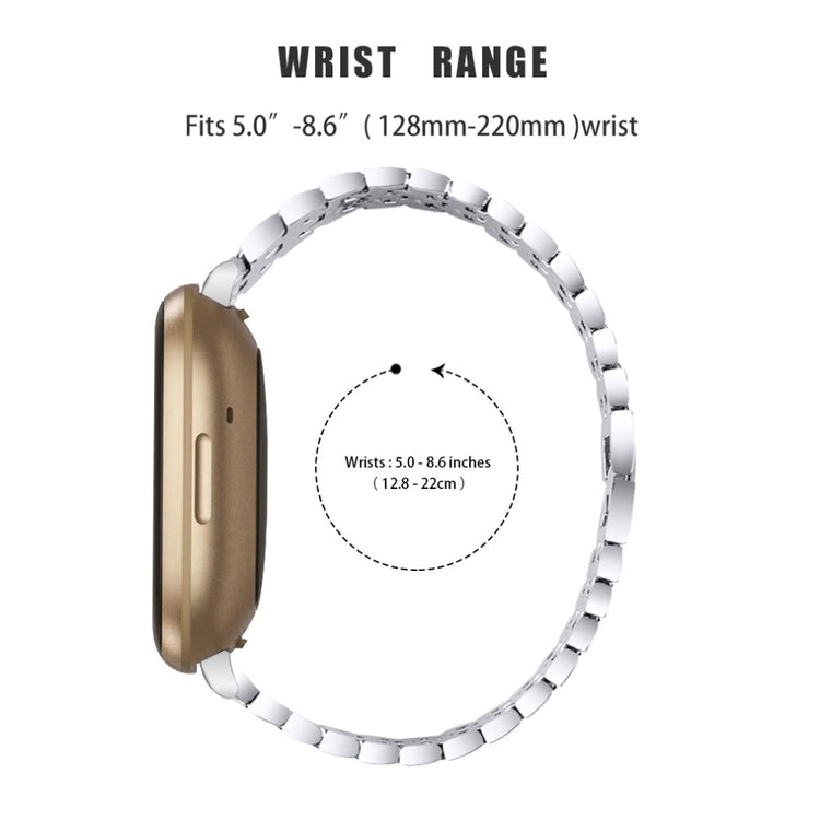 Entscheiden Sie sich für das Armband aus Zinklegierung mit funkelndem Rhinestone-Dekor, um Ihrer Fitbit Versa 4 oder Sense 2 einen Hauch von Eleganz und Stil zu verleihen. Dieses Armband besteht aus hochwertigem Zinklegierungsmaterial, das nicht nur exquisit aussieht, sondern auch langlebig und widerstandsfähig ist. Die drei Reihen von glänzenden Rhinestones sorgen für einen einzigartigen, auffälligen Look, der Ihr Handgelenk zum Strahlen bringt. Es bietet eine gemäßigte Weichheit und ist angenehm zu tragen, sodass Sie es ganz einfach den ganzen Tag über nutzen können. Wenn Sie auf der Suche nach einer idealen Ersatzlösung für Ihr altes, gebrochenes Armband sind, ist dieses Armband die perfekte Wahl. Mit einer Länge von 170 mm und einer Breite von 20 mm passt es bequem an Handgelenke mit einem Umfang von 5,0'' bis 8,6'' (128 mm - 220 mm). Machen Sie Ihr Smartwatch-Erlebnis noch ansprechender mit diesem stilvollen Armband!