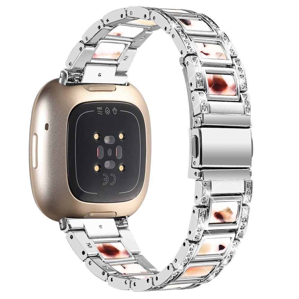 Verleihen Sie Ihrer Smartwatch mit unserem Armband für die Fitbit Versa 4 / Sense 2 einen Hauch von Eleganz und Stil. Hergestellt aus hochwertigem Edelstahl und langlebigen Harzblöcken, bietet dieses Armband nicht nur eine kreative Optik, sondern auch eine außergewöhnliche Langlebigkeit. Die funkelnden Strasssteine setzen einen einzigartigen Akzent und machen Ihre Smartwatch zu einem individualisierten Mode-Statement. Dank des stabilen Klappverschlusses ist das Armband einfach an- und abzulegen und bietet zusätzlichen Halt. Jedes Harzstück wurde von erfahrenen Handwerkern