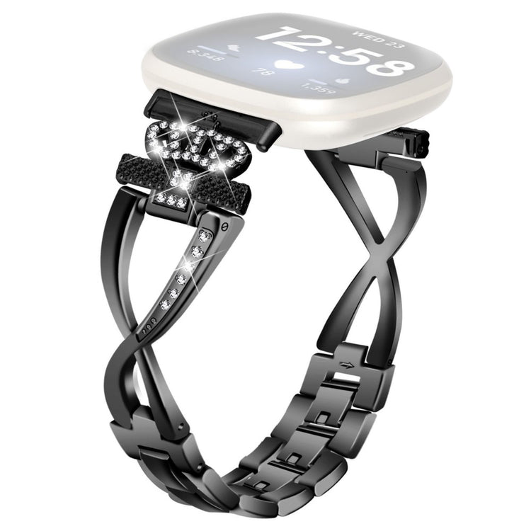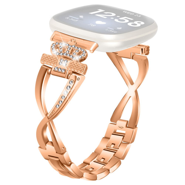 Entscheiden Sie sich für das Fitbit Versa 4 / Sense 2 Armband aus hochwertigem Zinklegierung, um Ihrer Smartwatch einen eleganten Touch zu verleihen. Dank der erstklassigen Verarbeitung ist dieses Armband nicht nur haltbar, sondern bietet auch einen besonders angenehmen Tragekomfort. Das stilvolle Kronen- und X-Design wird durch funkelnde Rhinestones ergänzt, die das Armband zu einem echten Hingucker machen. Gestalten Sie Ihre Smartwatch ganz persönlich und heben Sie sich von der Masse ab. Ein Must-Have, um sowohl Funktionalität als auch Ästhetik zu kombinieren!