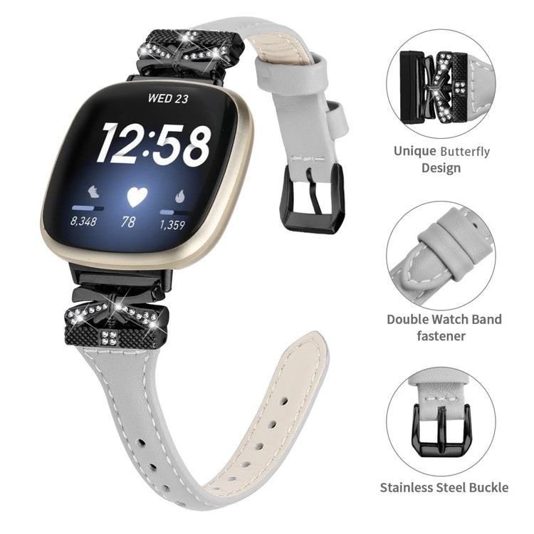 Dieses Armband aus hochwertigem Echtleder bietet einen angenehmen Tragekomfort und lässt sich leicht mit Ihrem täglichen Outfit kombinieren. Der Verschluss in Schmetterlingsform und die glänzenden Strasssteine verleihen Ihrer Smartwatch einen schönen und stilvollen Look.