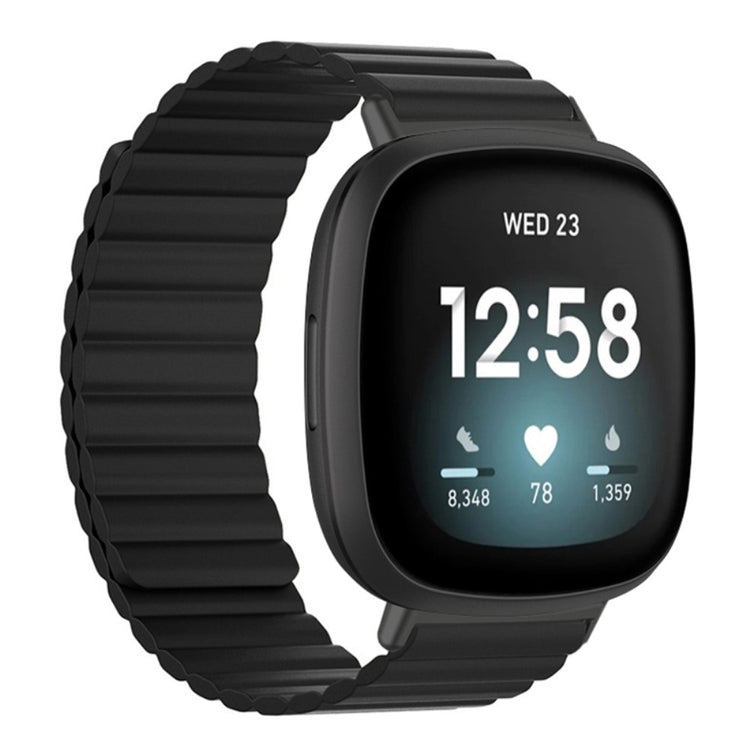 Fitbit Versa 3 / 4 / Fitbit Sense / Sense 2 Flexible Watch Band Magnetic Strap Replacement - Black+Orange
